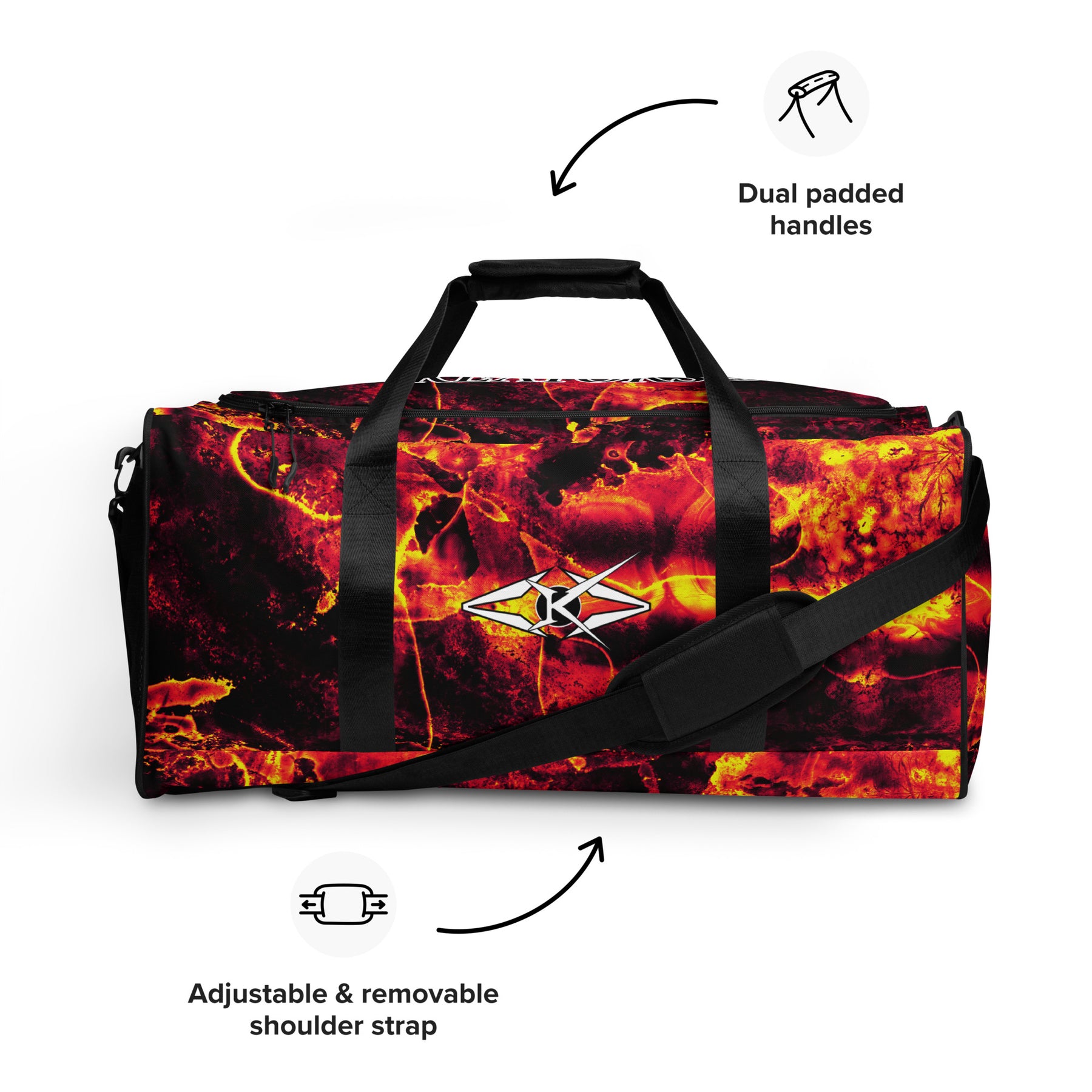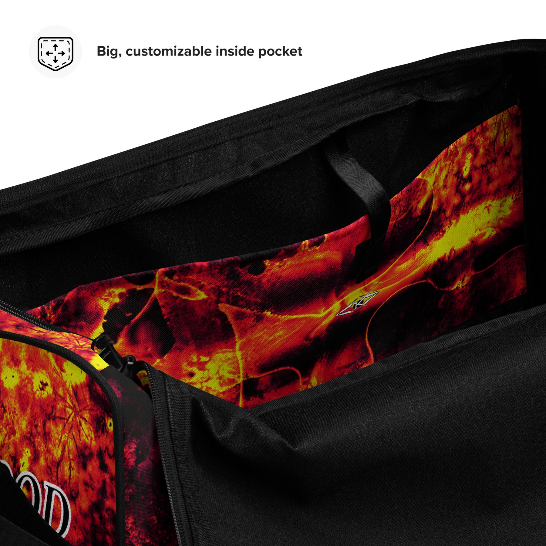 The Blaze Luxe Duffel by Vybrational Kreators is the perfect combination of bold style and functional luxury. Designed for those who demand both performance and aesthetics, this duffle bag features a striking fiery red color, making it an eye-catching statement piece that exudes energy and confidence. Crafted from premium, durable materials, this duffle offers unmatched quality while maintaining a sleek and modern look.