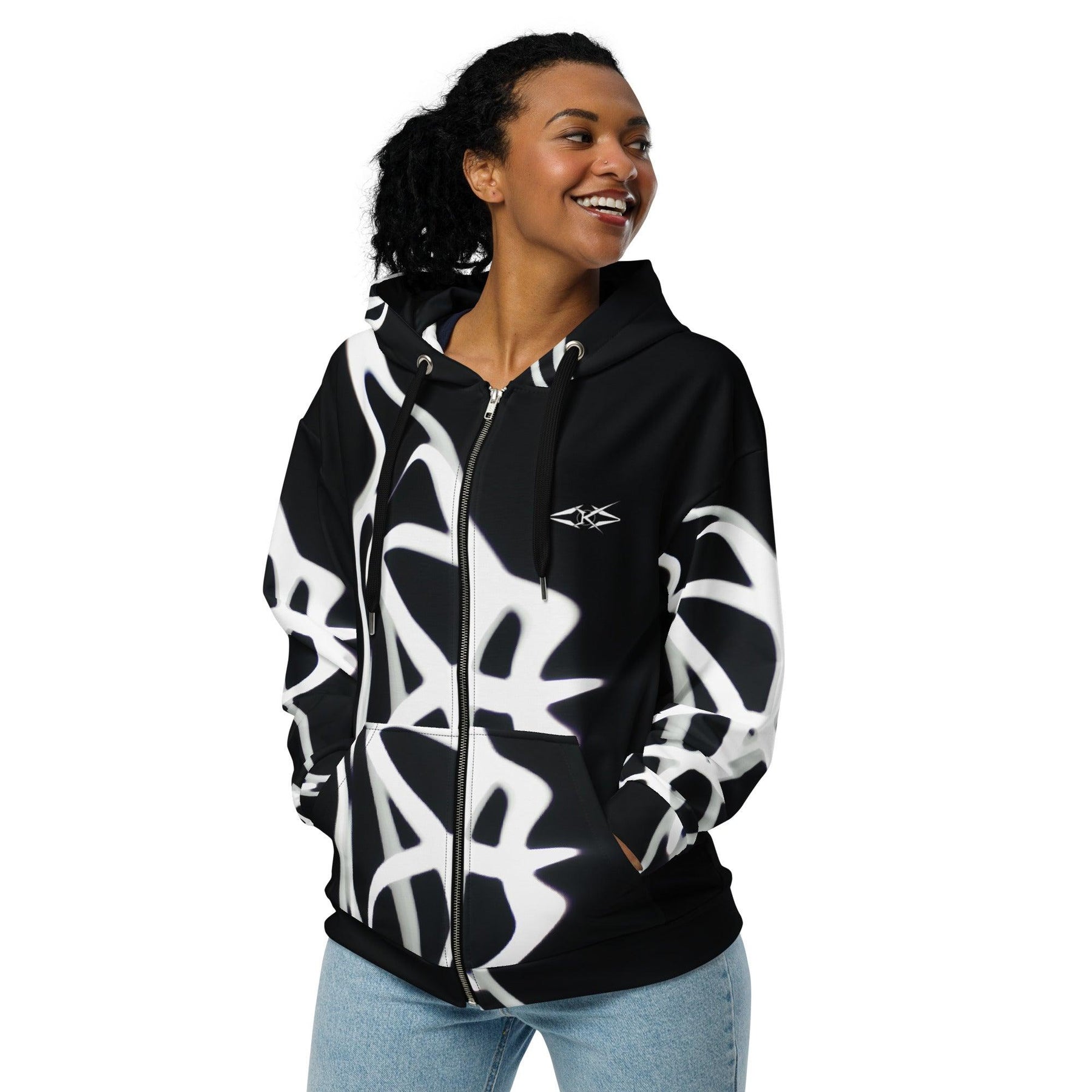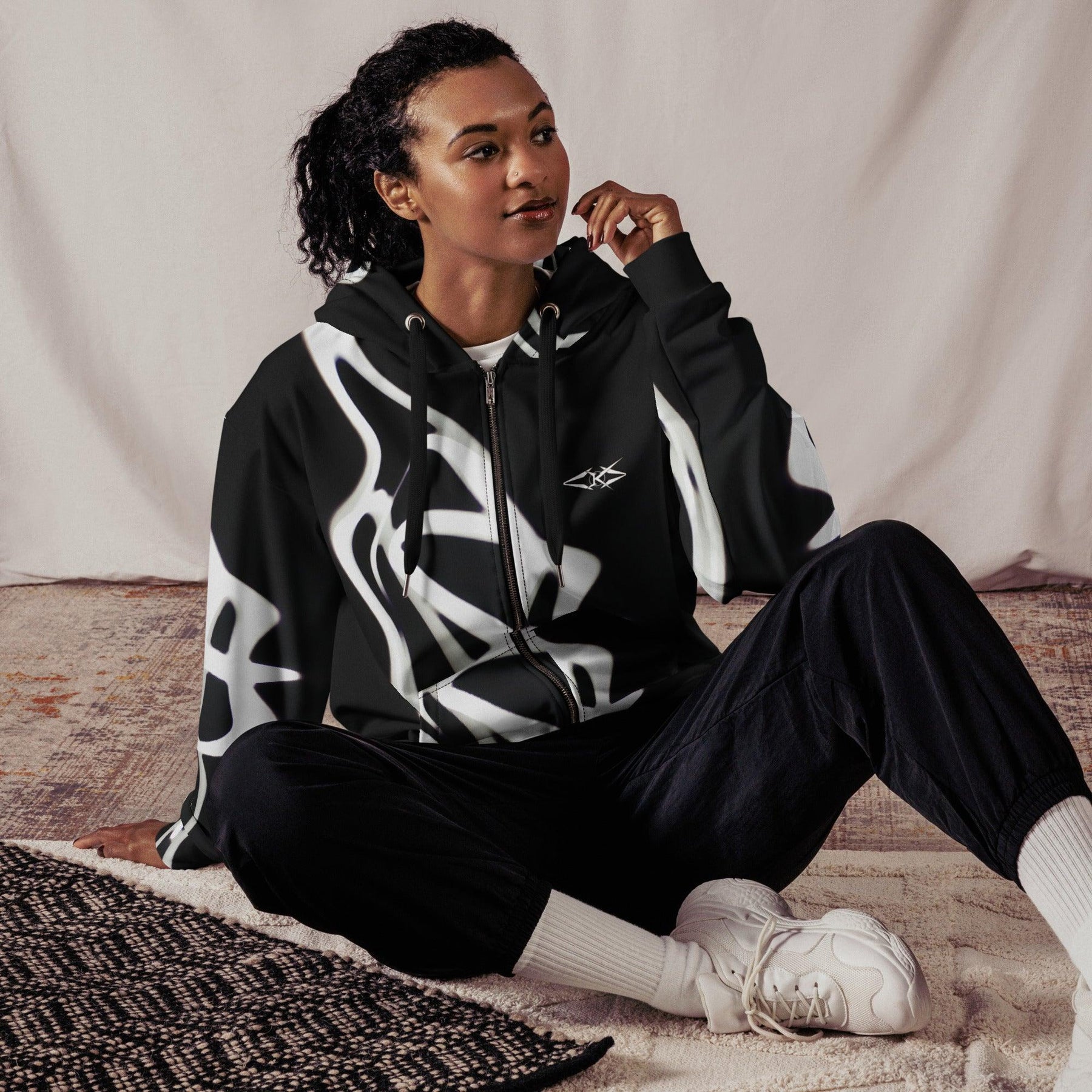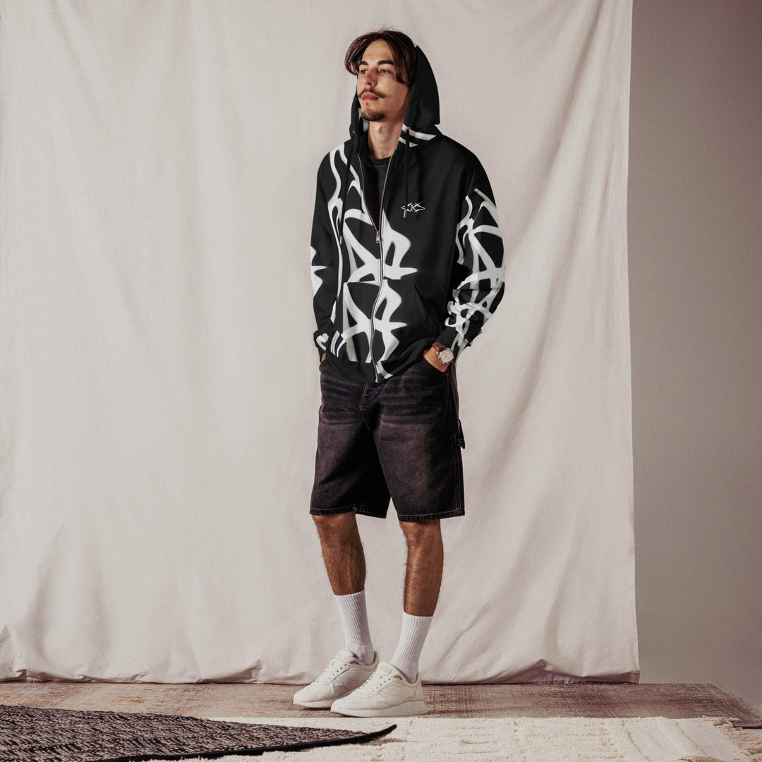 The Luxe Noir Drift Zip by Vybrational Kreators is the perfect outerwear for those who want to combine style, comfort, and sustainability. Whether you're dressing up for a casual day out or layering up for cooler months, this jacket will provide effortless luxury and sophistication.