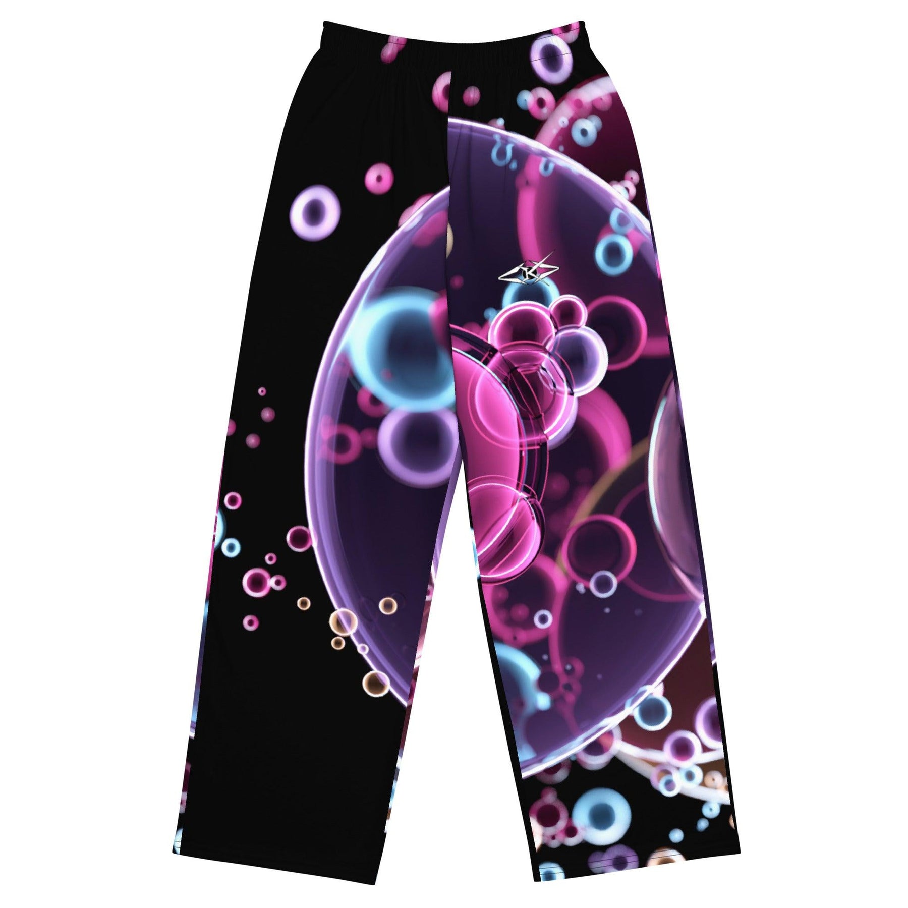 Step into the world of bold, sustainable luxury with the Vybrational Kreators Luxe Spectrum Wide Leg Pants. Crafted for those who desire both high-fashion sophistication and contemporary comfort, these wide-leg pants feature a striking pink, purple, and blue circular pattern that elevates any wardrobe. The dynamic design makes a powerful statement, while the relaxed yet tailored silhouette brings a sense of effortless luxury to your every move.