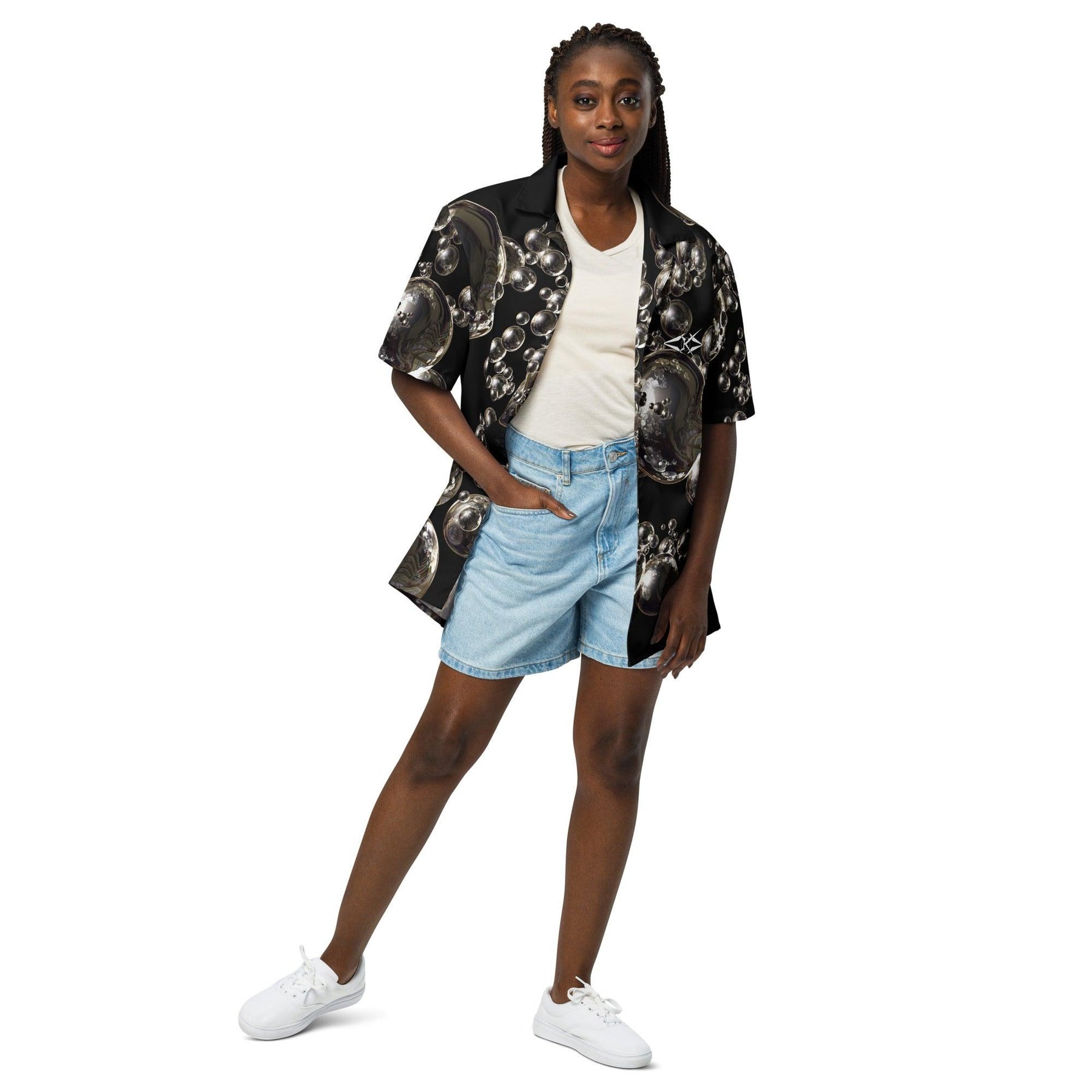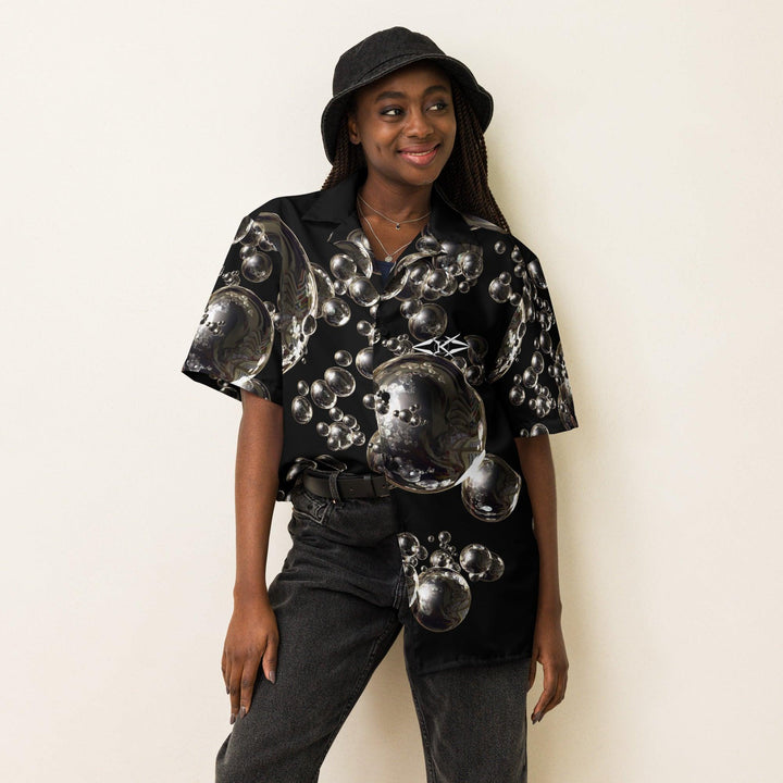Product Description: Step into the realm of true sophistication with the Luxe Obsidian Halo Prestige Button-Up from Vybrational Kreators—an embodiment of bold luxury and refined craftsmanship. Inspired by the rich depths of obsidian and the celestial elegance of halos, this button-up shirt is a perfect blend of contemporary design and timeless prestige. The deep, luxurious black fabric features subtle metallic threads that shimmer in the light, creating an ethereal halo effect that evokes a sense of exclusivity and mystique.