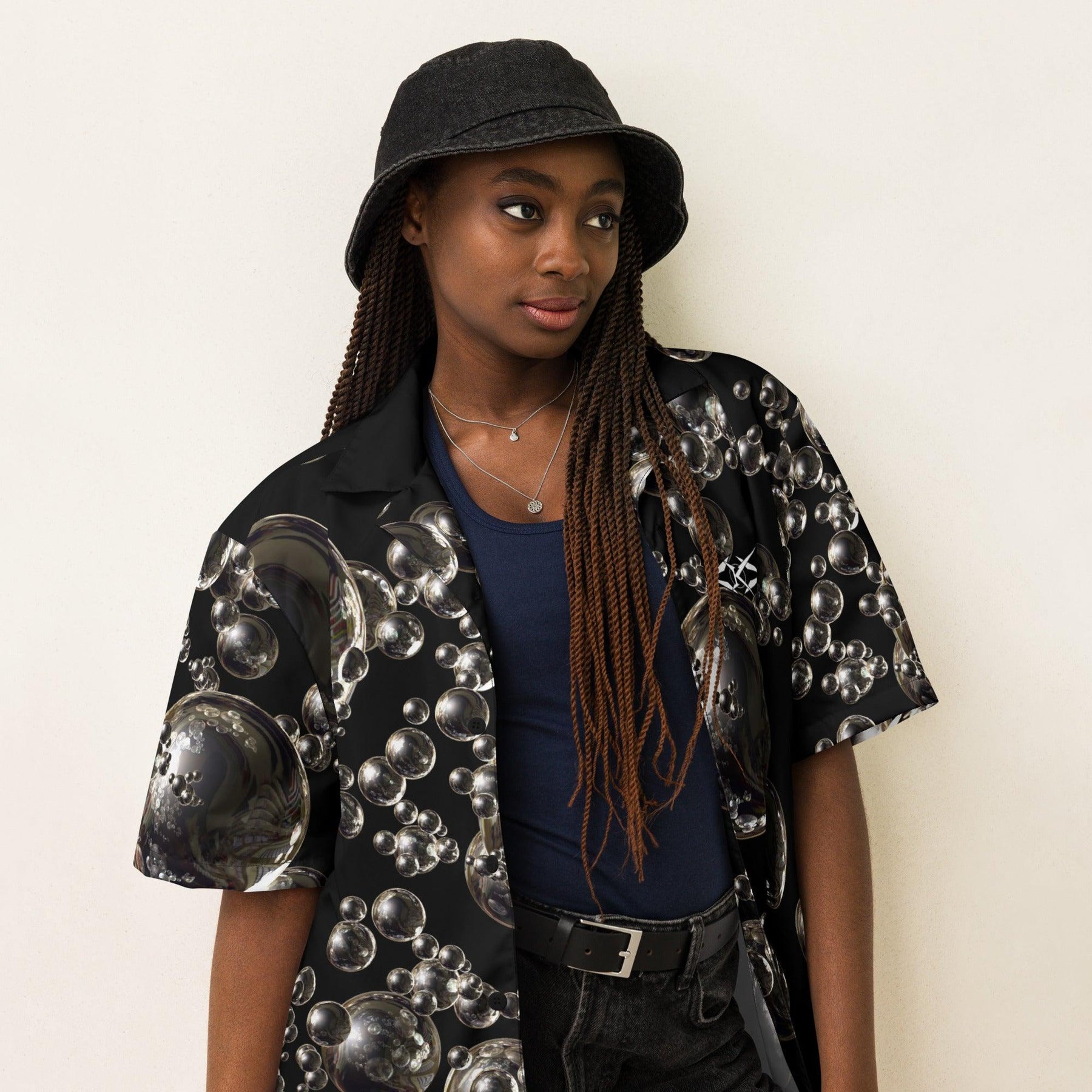 Luxe Obsidian Halo Prestige Button-Up – Vybrational Kreators Fashion Luxury Brand