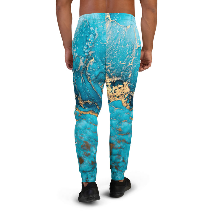 Featuring an adjustable drawstring waistband and elastic cuffs at the ankles, these joggers offer a tailored, custom fit while providing a sleek, modern finish. The gold detailing complements the vibrant turquoise design, elevating your look to the next level of luxury. Whether paired with the Turquoise Luxe Hoodie for a coordinated outfit or worn as a standalone statement piece, these joggers provide the perfect combination of comfort, elegance, and durability.
