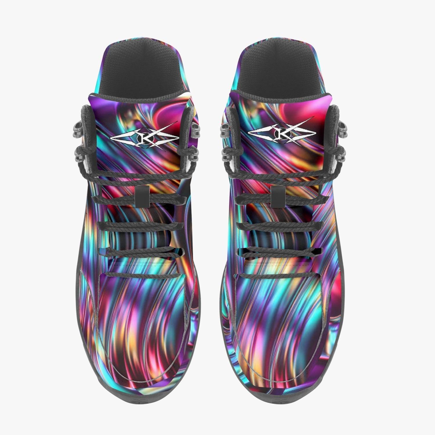 The Luxe Nebula Fade Kreator Grit Boots by Vybrational Kreators are a striking blend of futuristic design and high-end craftsmanship, built for those who demand both style and performance. Featuring a unique nebula fade colorway that transitions seamlessly from deep, rich hues to lighter, ethereal tones, these boots are designed to make a bold statement. The gradient effect symbolizes movement, energy, and transformation, bringing a cosmic, otherworldly vibe to your footwear collection.