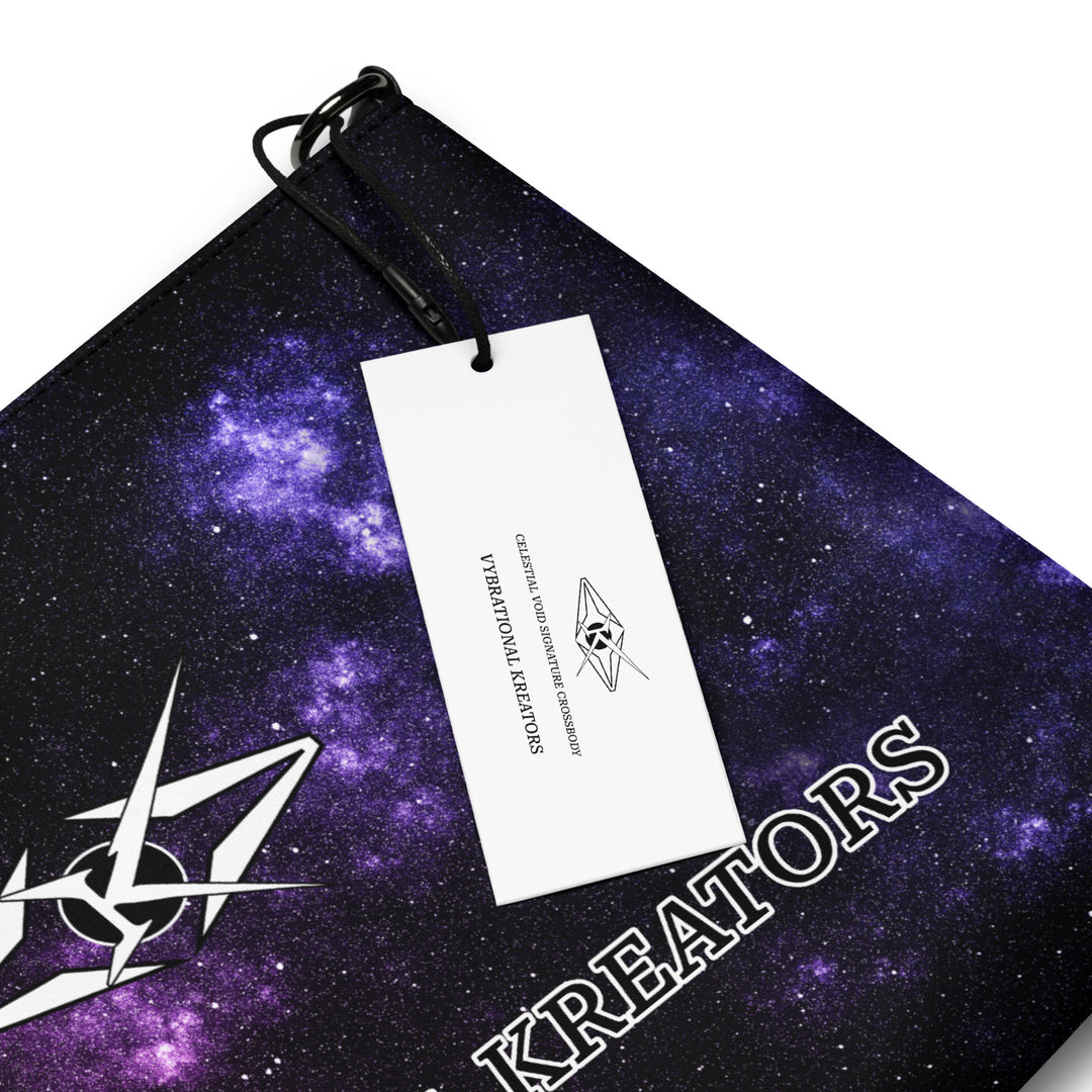 Step into the depths of luxury and cosmic mystery with the Celestial Void Signature Crossbody by Vybrational Kreators—a sleek, futuristic statement piece inspired by the vast expanse of the universe. Designed for those who embrace the bold and the unknown, this crossbody showcases an ultra-deep black high-gloss finish that shifts under light, revealing hints of midnight blue and cosmic silver undertones, reminiscent of the endless void of space.