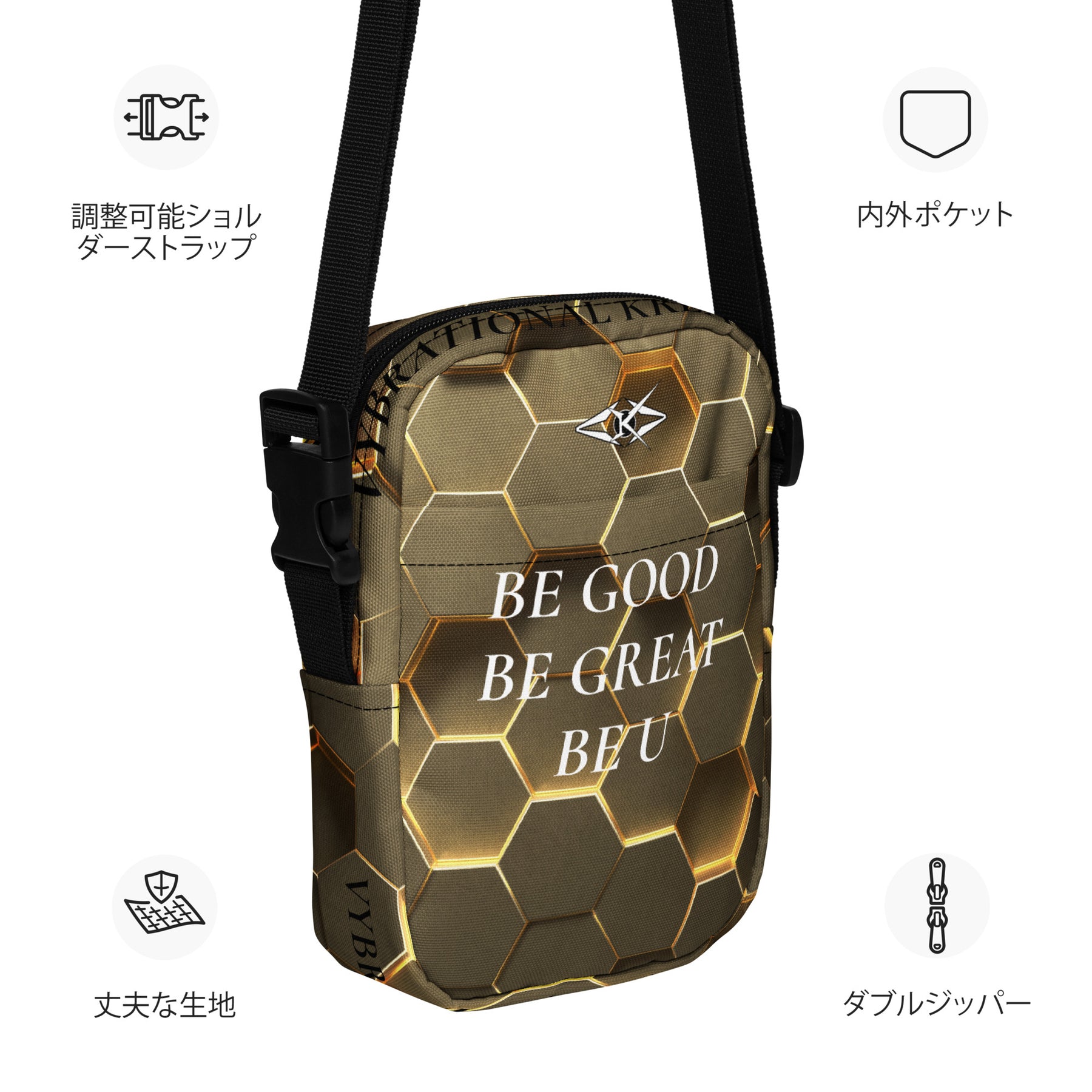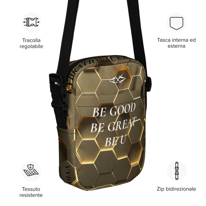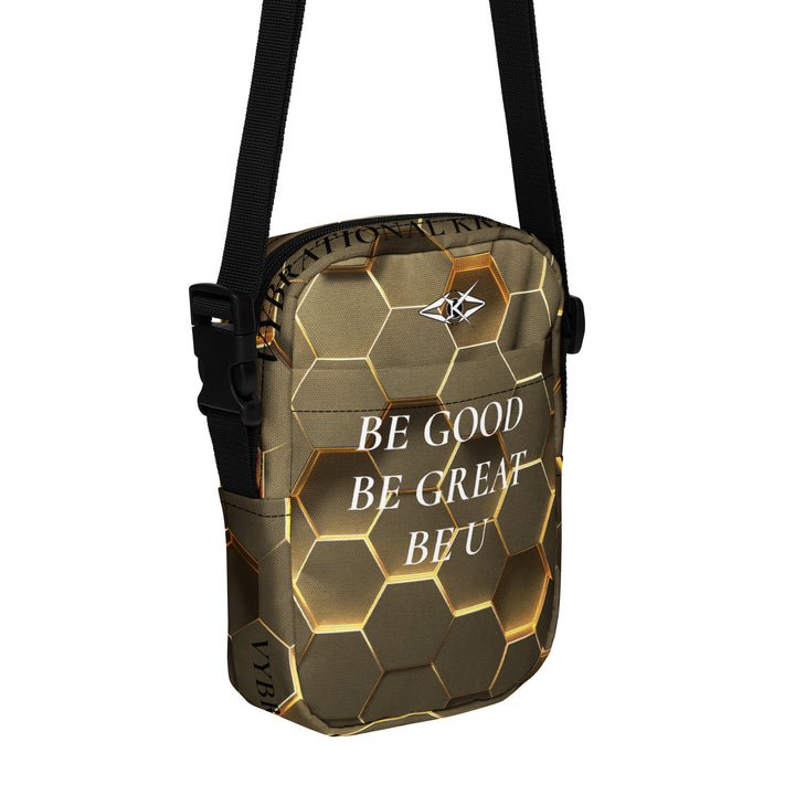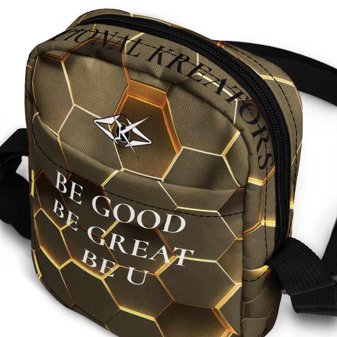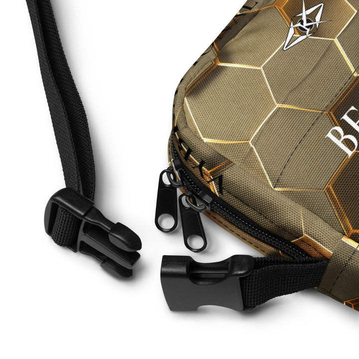 Introducing the Gold Hexa Luxe Crossbody by Vybrational Kreators, a stunning fusion of refined design, functionality, and sophistication. This luxurious crossbody bag features an exclusive gold honeycomb pattern, giving it a unique, opulent appearance that effortlessly stands out. The intricate design, combined with the premium craftsmanship, makes this bag a statement accessory for the modern individual who appreciates both style and practicality.