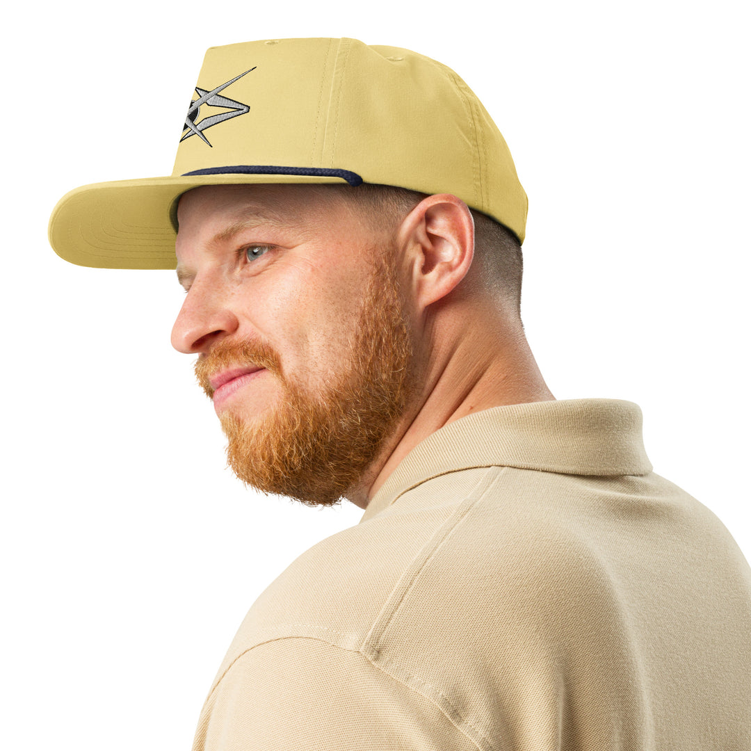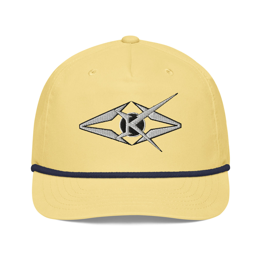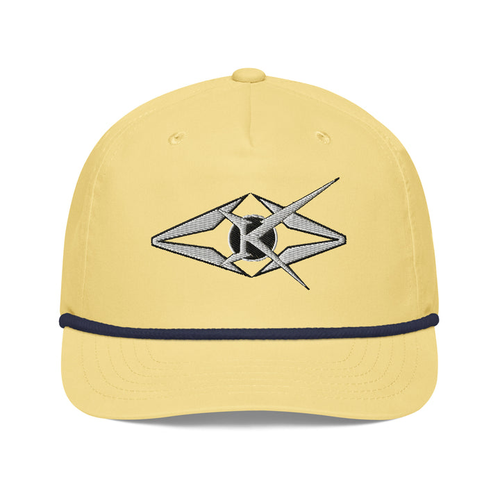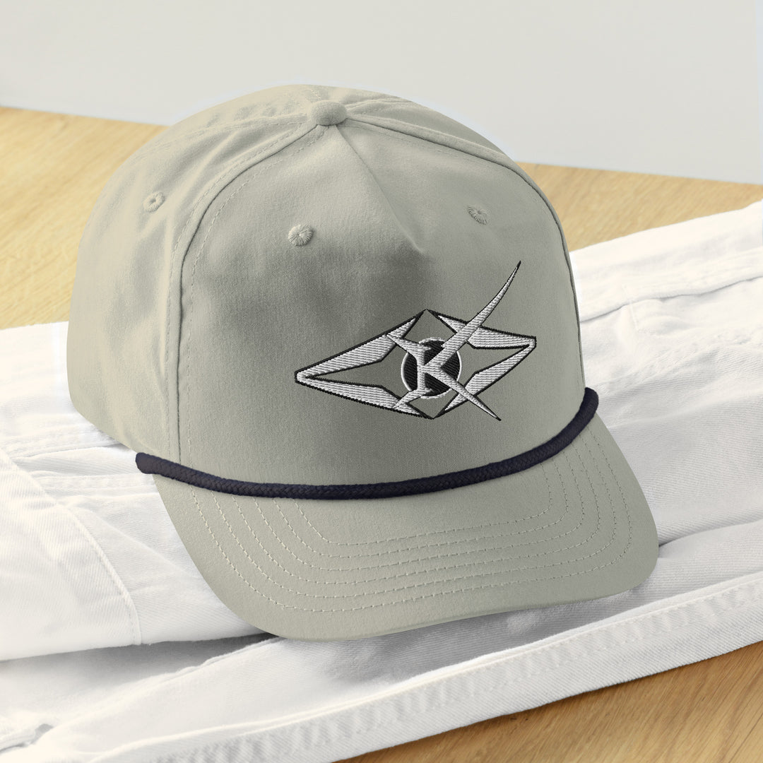 This unstructured, 5-panel cap features a front panel lined for enhanced structure and sophistication. The semi-curved bill brings a relaxed yet polished look, while the contrasting rope detail adds a subtle nautical influence, making this piece a true standout in luxury fashion.