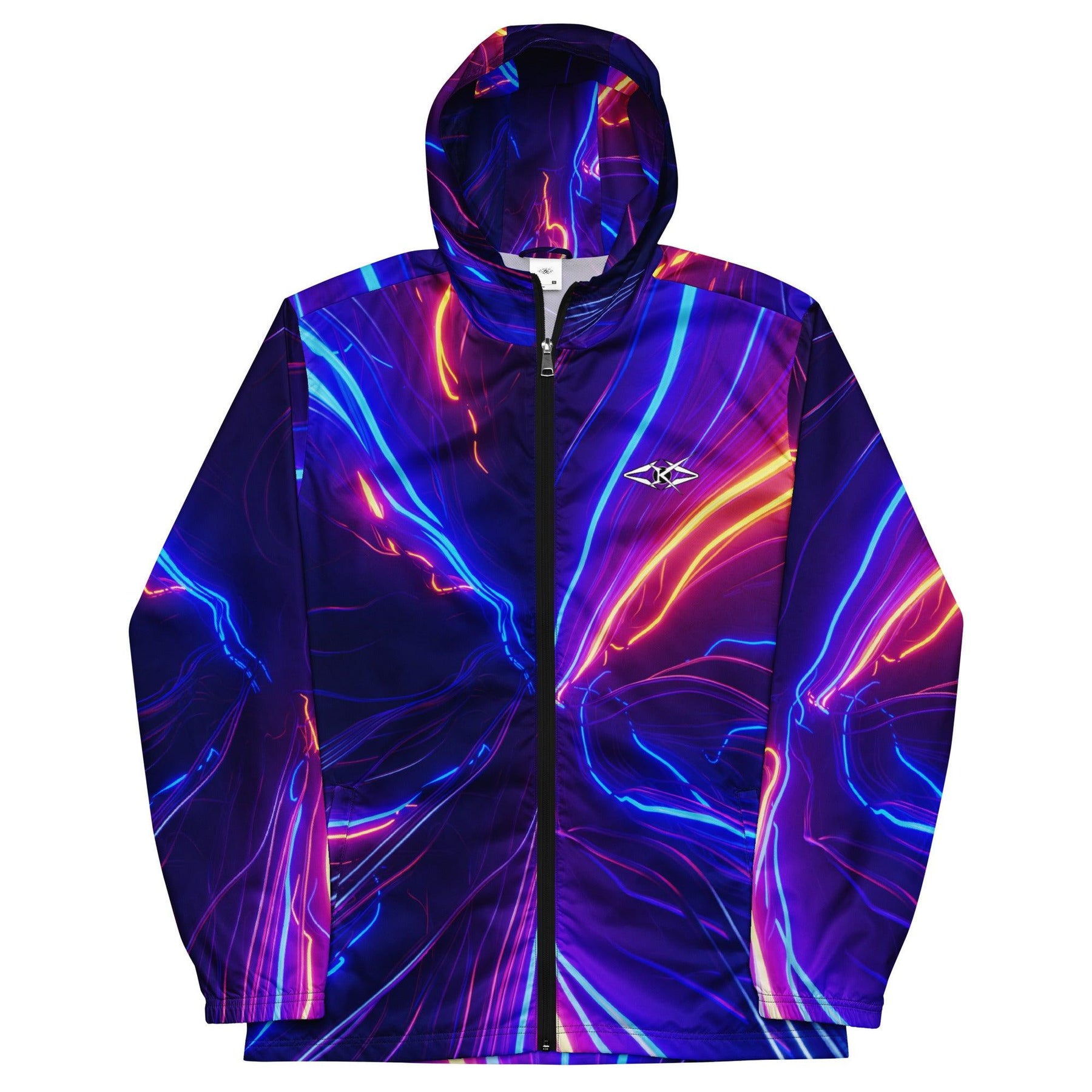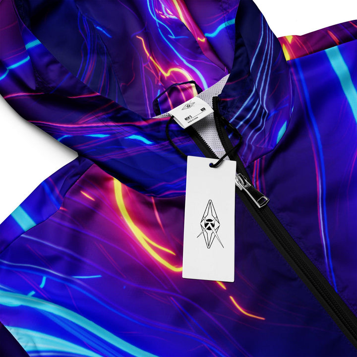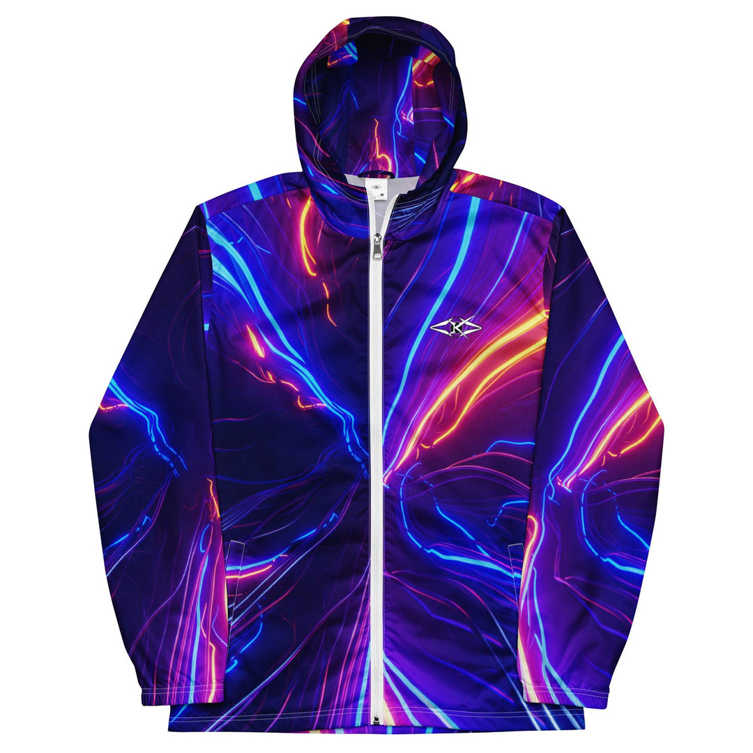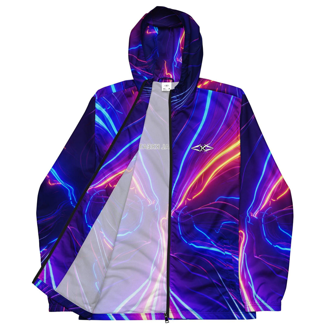 Shop the Vybrational Kreators Luxe Luminous Fury Windbreaker. A premium, weather-resistant jacket with a dynamic gradient design, adjustable hood, and tailored fit for ultimate luxury and style.