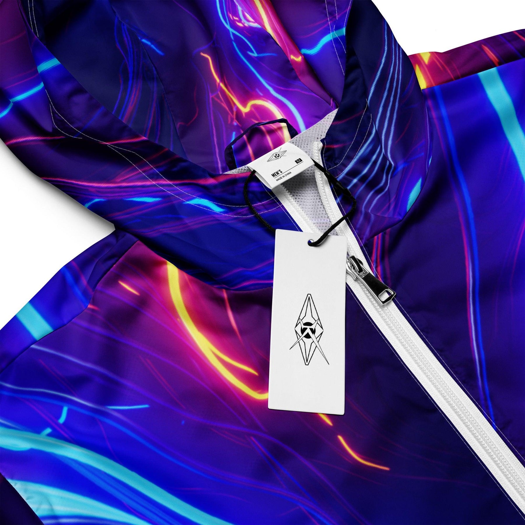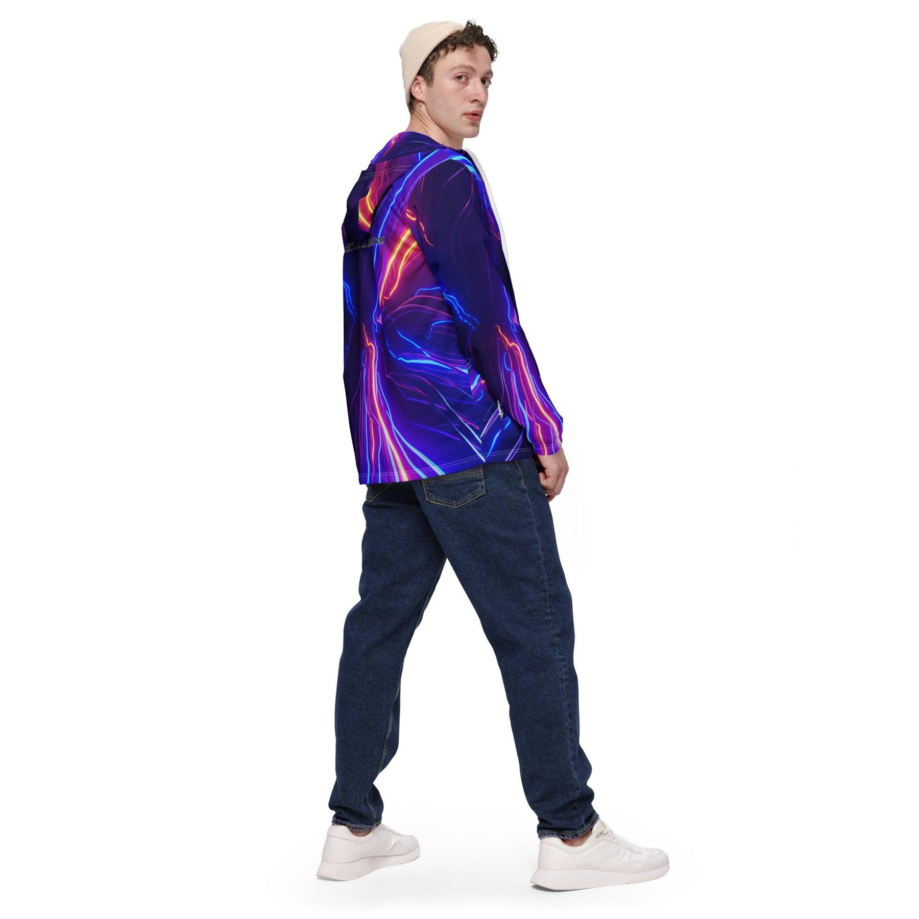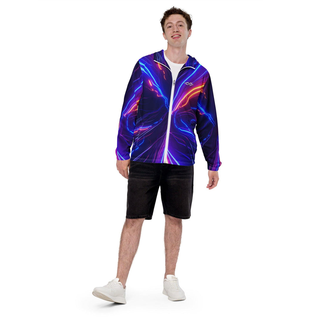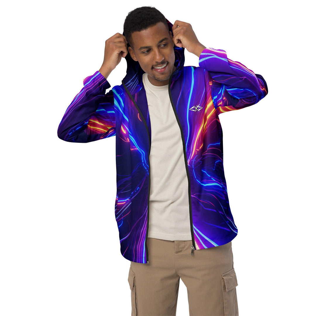Shop the Vybrational Kreators Luxe Luminous Fury Windbreaker. A premium, weather-resistant jacket with a dynamic gradient design, adjustable hood, and tailored fit for ultimate luxury and style.
