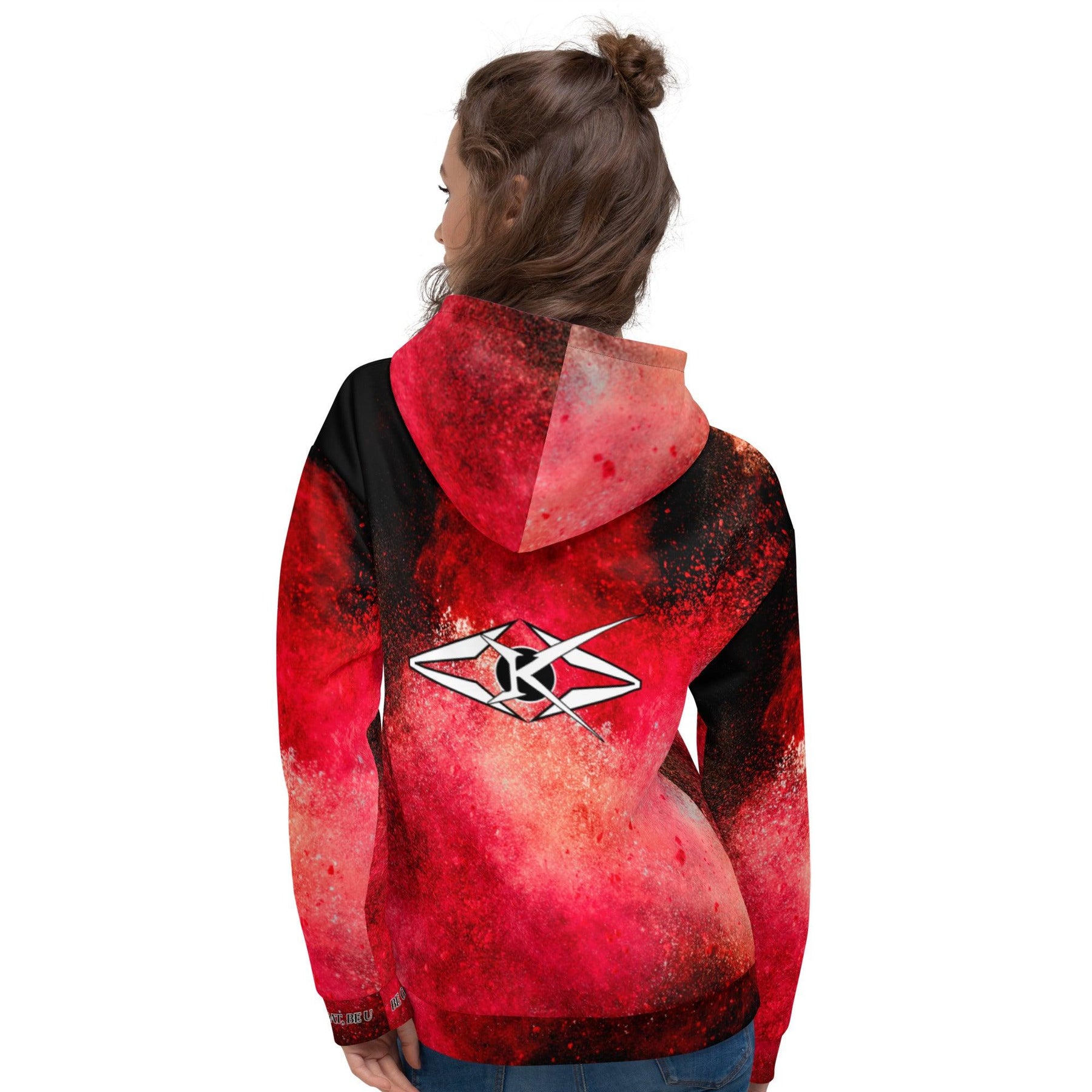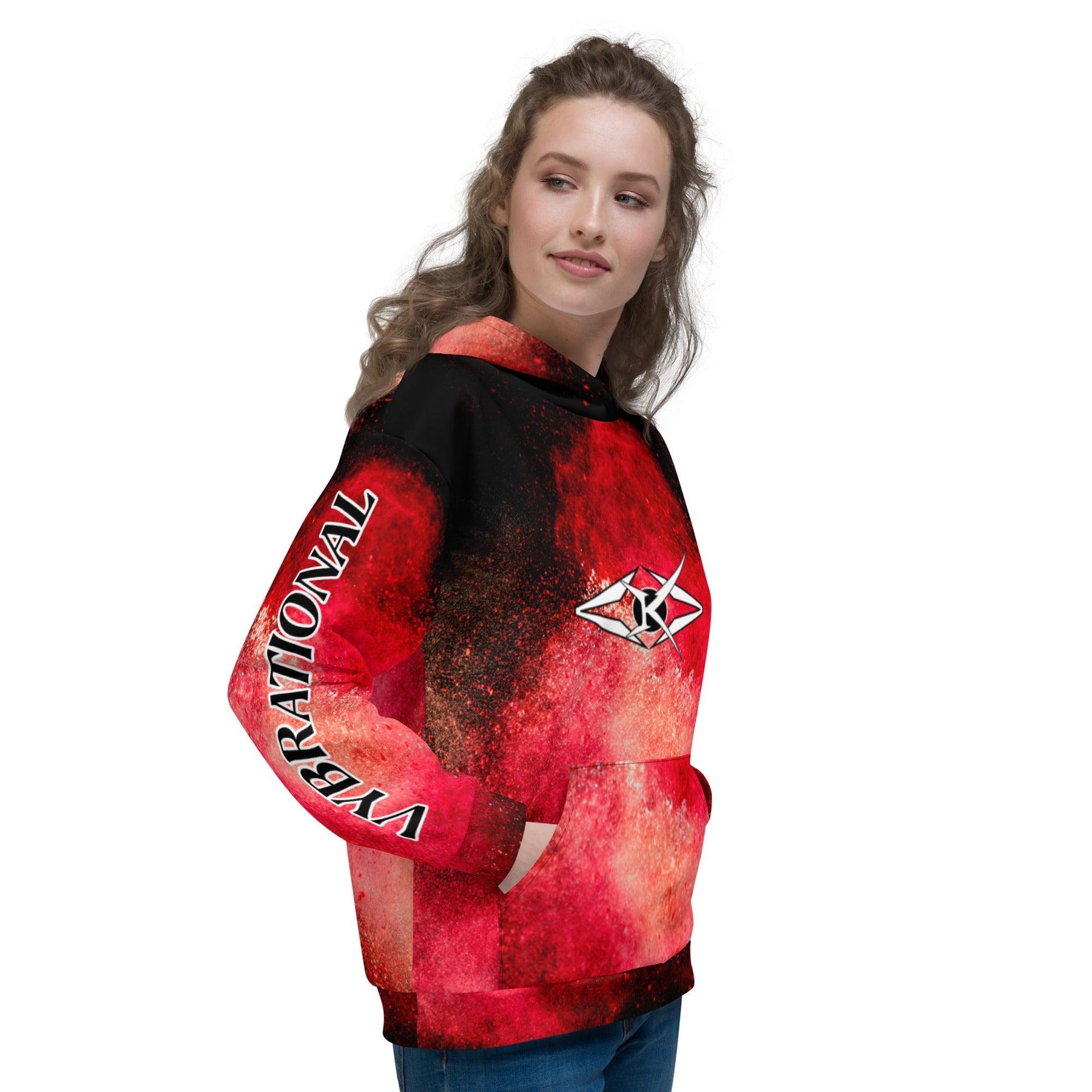 The Scarlet Vortex Hoodie by Vybrational Kreators is the perfect addition to your wardrobe for those who seek a statement piece that combines luxurious craftsmanship with bold, vibrant style. Whether you're layering up for colder weather or wearing it as a standalone piece, this hoodie is designed to turn heads and elevate any look.