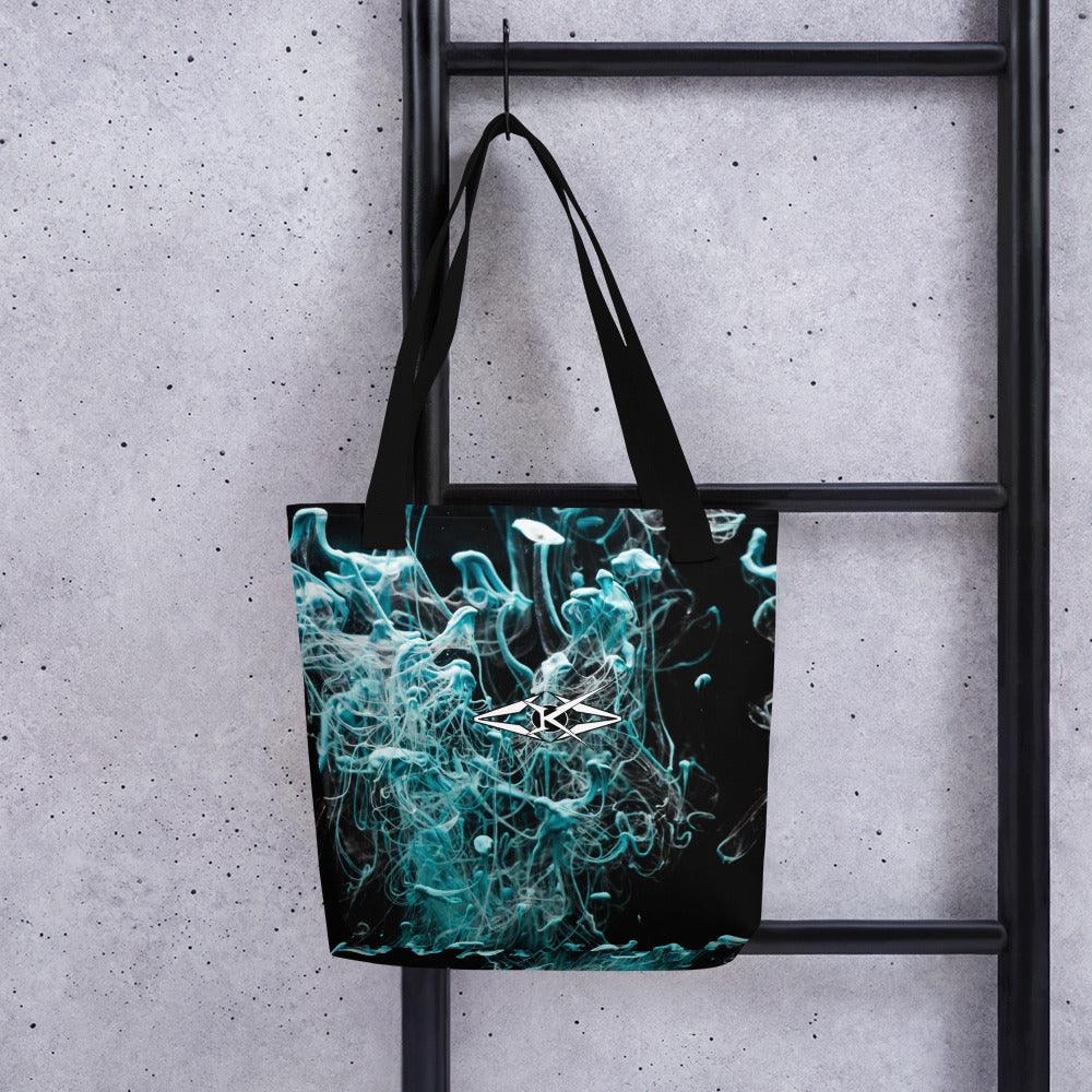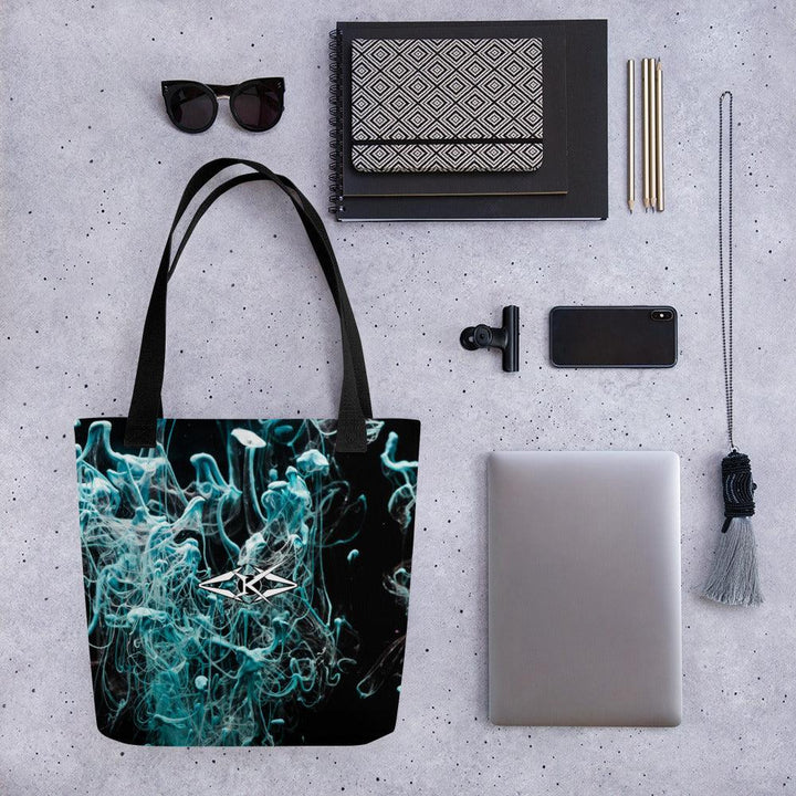 Constructed from 100% spun polyester fabric, this tote features a refined texture that’s both durable and soft to the touch, ensuring a high-end look and feel. The bold design and sleek finish make it the perfect accessory to carry your essentials while commanding attention wherever you go. With a size of 15″ × 15″ (38.1 × 38.1 cm) and a capacity of 2.6 US gal (10 l), the tote offers a generous interior that combines spaciousness with structured style.