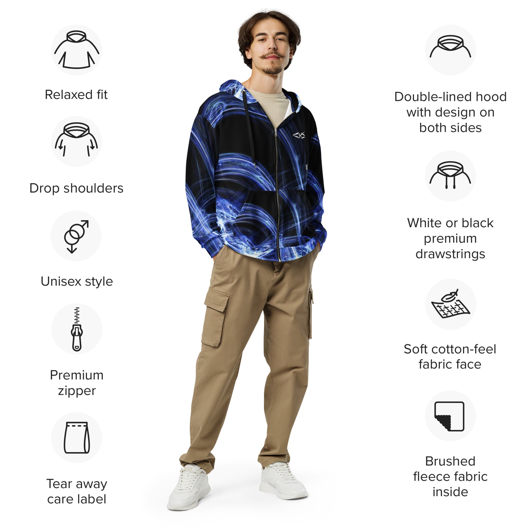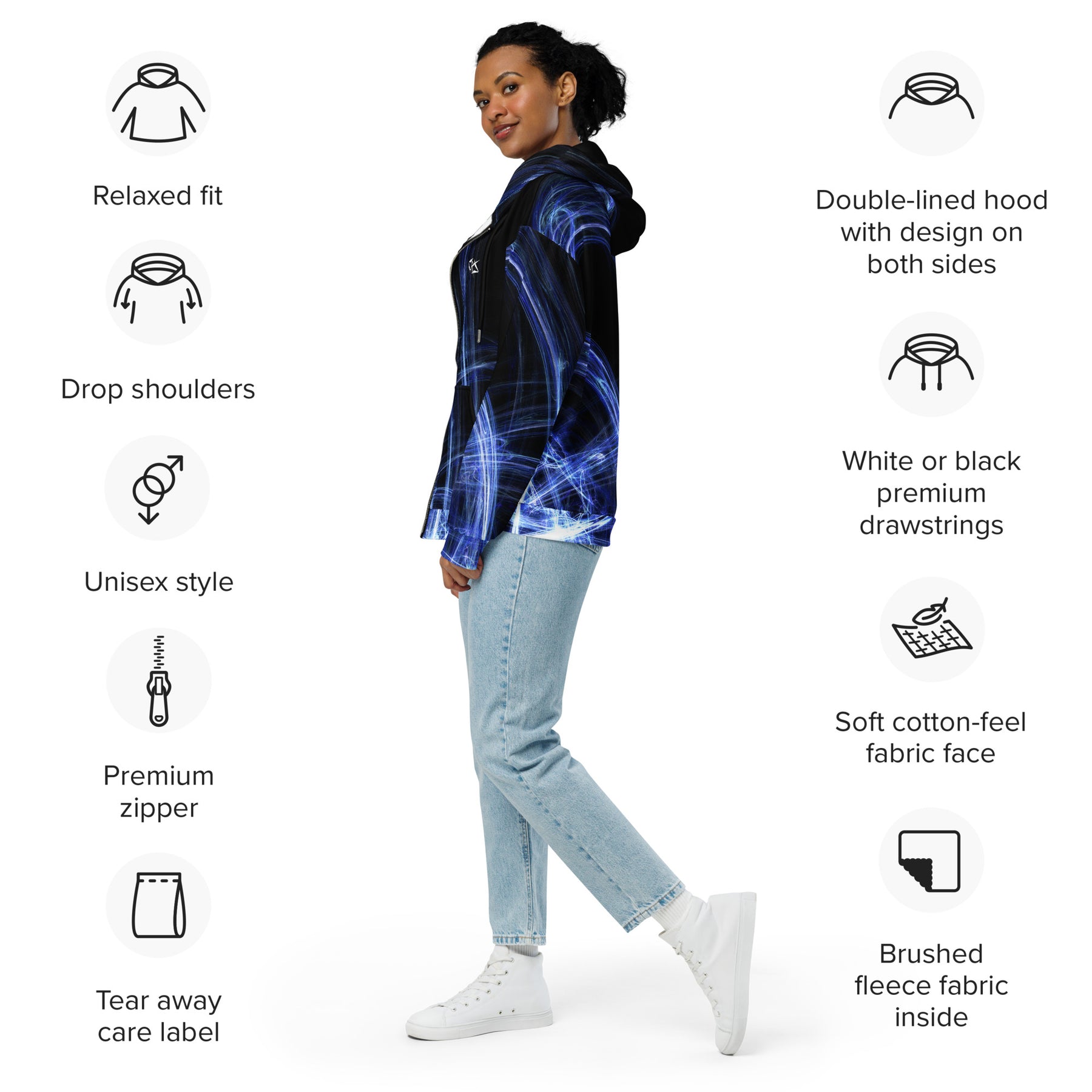 Meet the zip hoodie—a must-have for everyday wear. Crafted from 95% recycled polyester, it combines sustainability with style. Soft both inside and out, this unisex hoodie offers a relaxed fit with drop shoulders. Plus, it’s designed to last, keeping you cozy and fashionable for years to come.