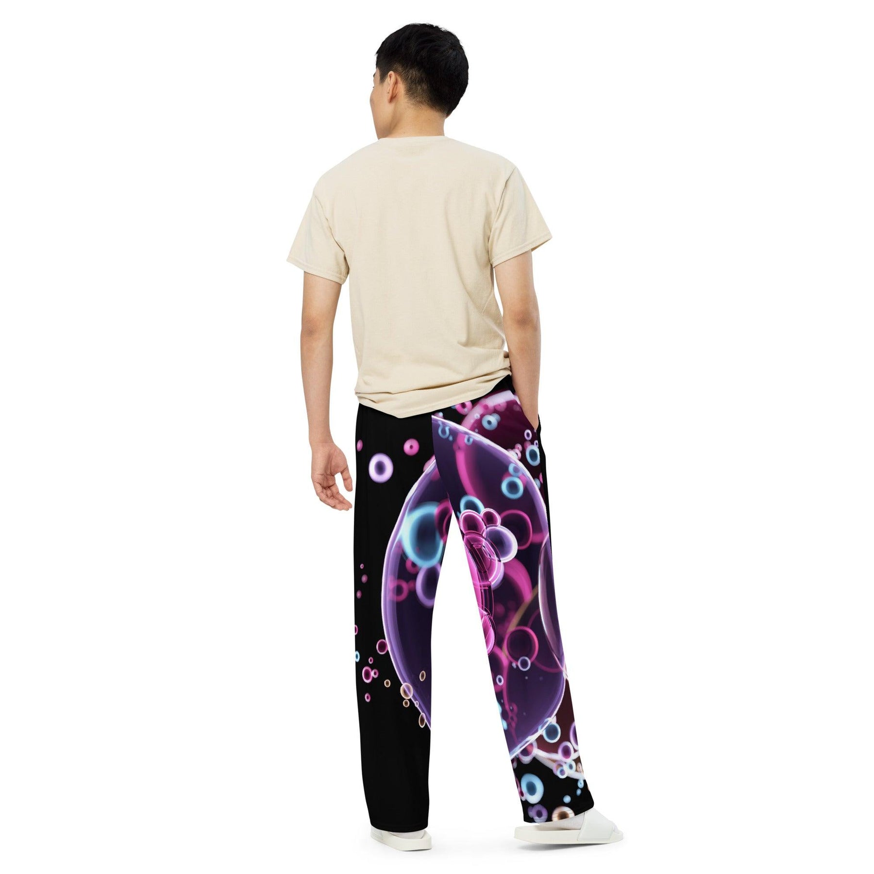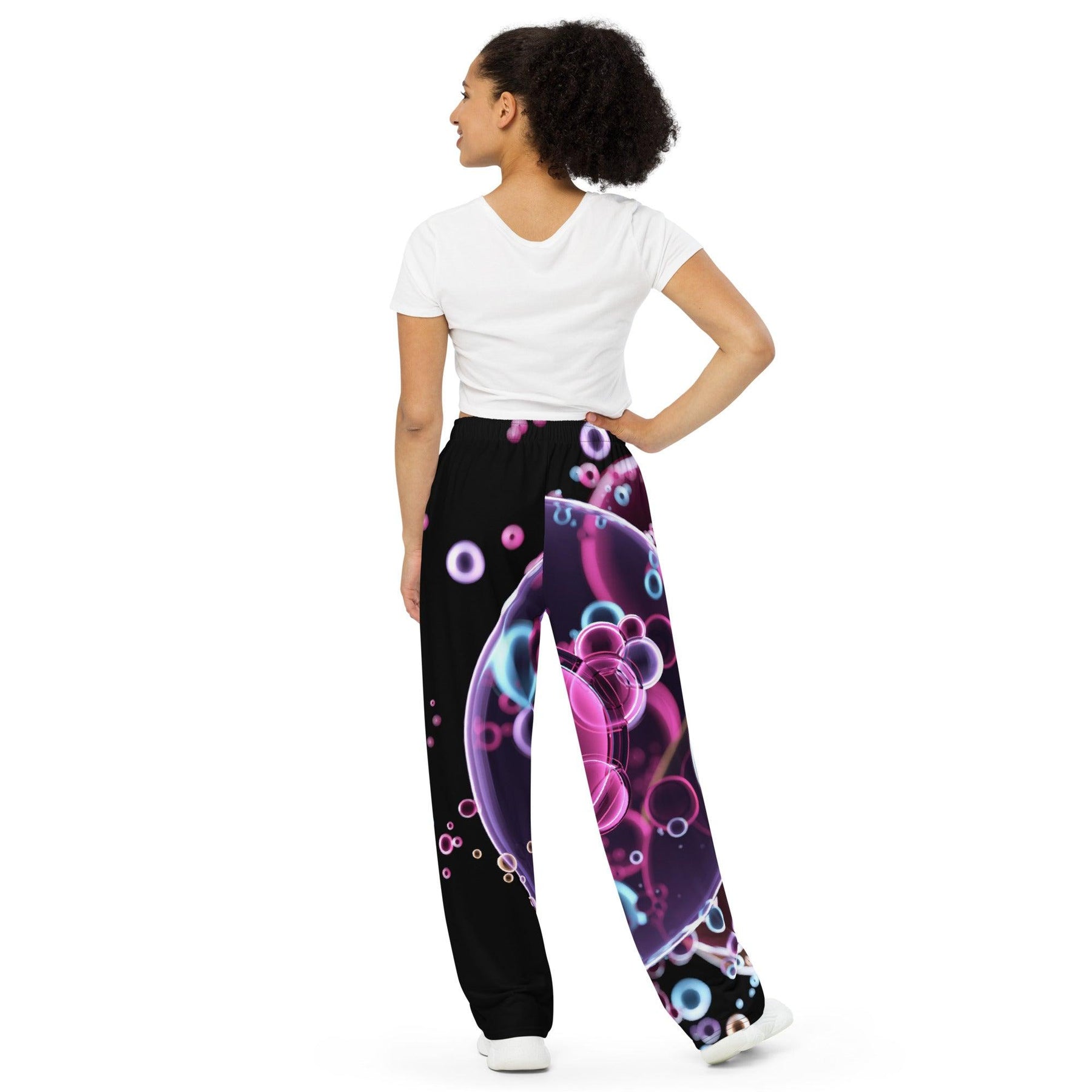 Step into the world of bold, sustainable luxury with the Vybrational Kreators Luxe Spectrum Wide Leg Pants. Crafted for those who desire both high-fashion sophistication and contemporary comfort, these wide-leg pants feature a striking pink, purple, and blue circular pattern that elevates any wardrobe. The dynamic design makes a powerful statement, while the relaxed yet tailored silhouette brings a sense of effortless luxury to your every move.