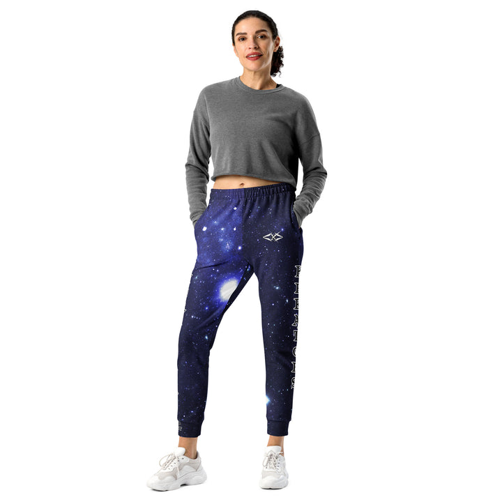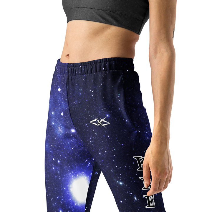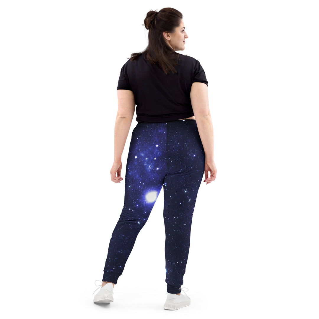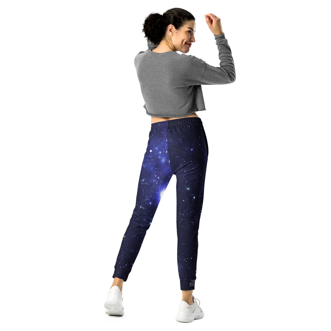 Designed with an ultra-soft, breathable fabric that moves with you, the Galaxy Joggers feature an enchanting celestial print of deep cosmic blues, radiant purples, and sparkling silver accents, mirroring the beauty of the night sky. The intricate pattern is not just a design; it's a symbol of the limitless energy within you, offering a connection to the stars and a reminder to shine bright.