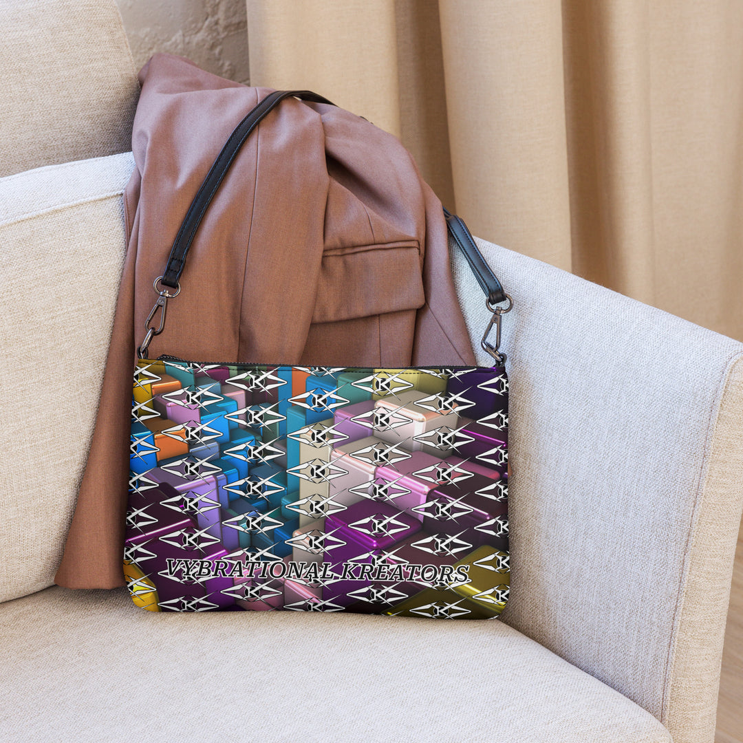 Immerse yourself in a spectrum of luxury and movement with The Prism Flux Crossbody by Vybrational Kreators—an avant-garde masterpiece that captures the essence of light, color, and transformation. Designed for the bold and the extraordinary, this dynamic statement piece shifts hues under light, revealing an iridescent blend of electric purples, deep sapphires, fiery oranges, and cosmic greens, reminiscent of a prismatic light wave in motion.