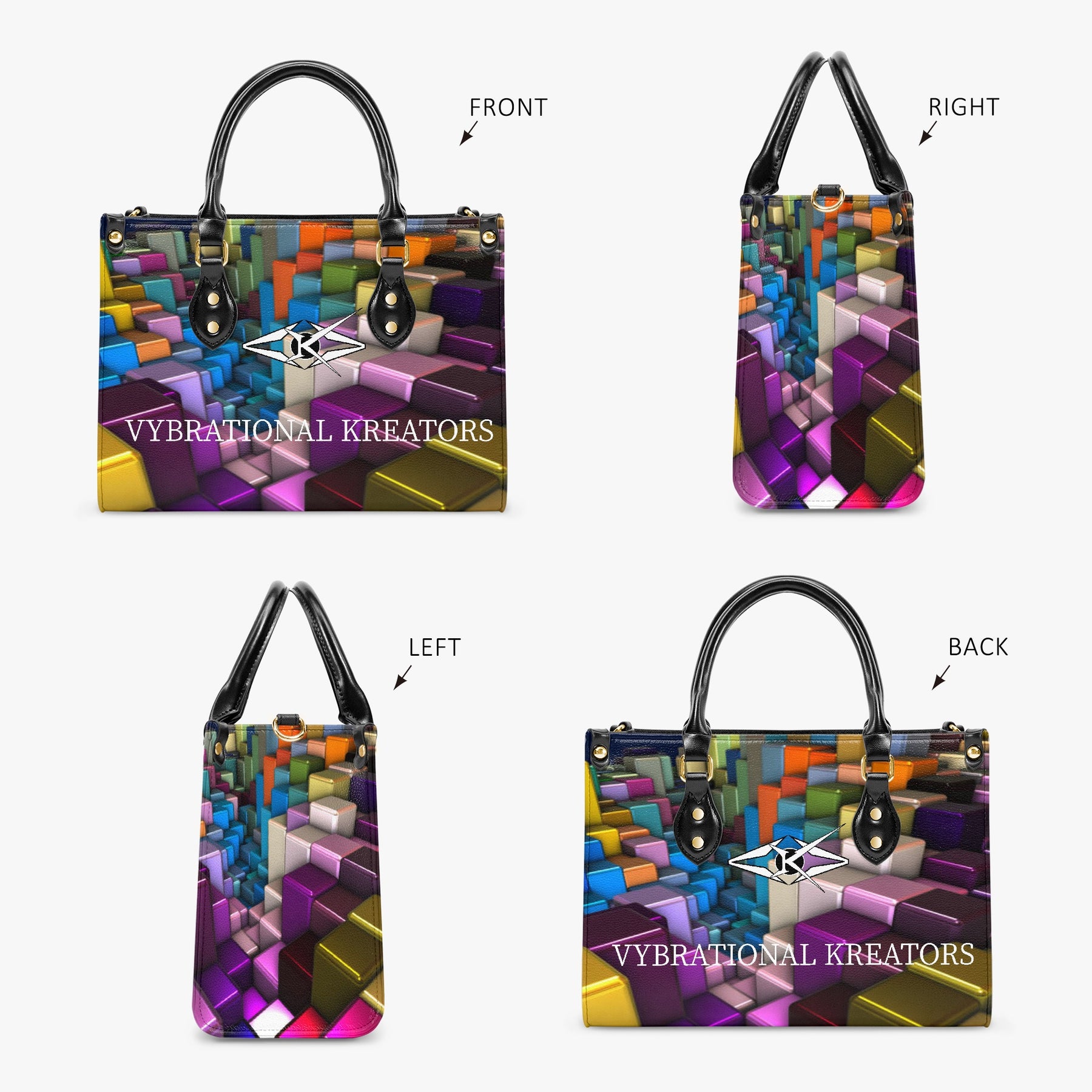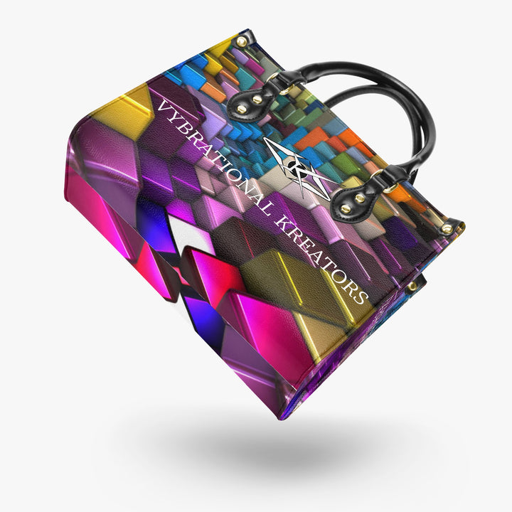 Illuminate your presence with the Prism Flux Tote by Vybrational Kreators—a radiant fusion of futuristic style and everyday luxury. Designed for bold creatives and elevated thinkers, this premium PU leather tote features a stunning holographic prism finish that reflects light and energy wherever you go.