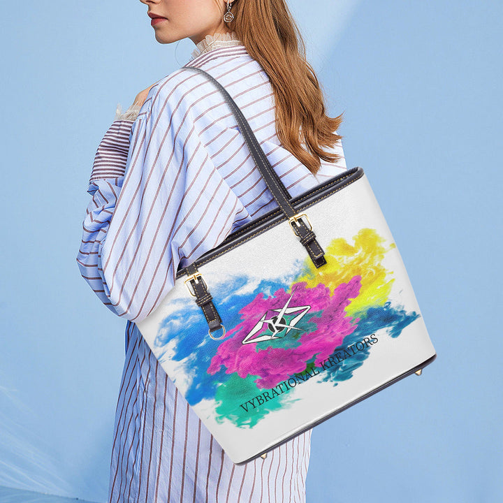 The Splat Legacy Tote by Vybrational Kreators is a bold, artistic accessory that combines high-end luxury with an eye-catching design. Crafted from premium PU leather, this tote features a unique splat-inspired pattern that bursts with vibrant colors and dynamic energy, adding a modern, creative touch to your everyday look. Ideal for those who love to stand out, the Splat Legacy Tote is perfect for carrying your essentials with style, whether you're heading to work, running errands, or going on a weekend getaway.