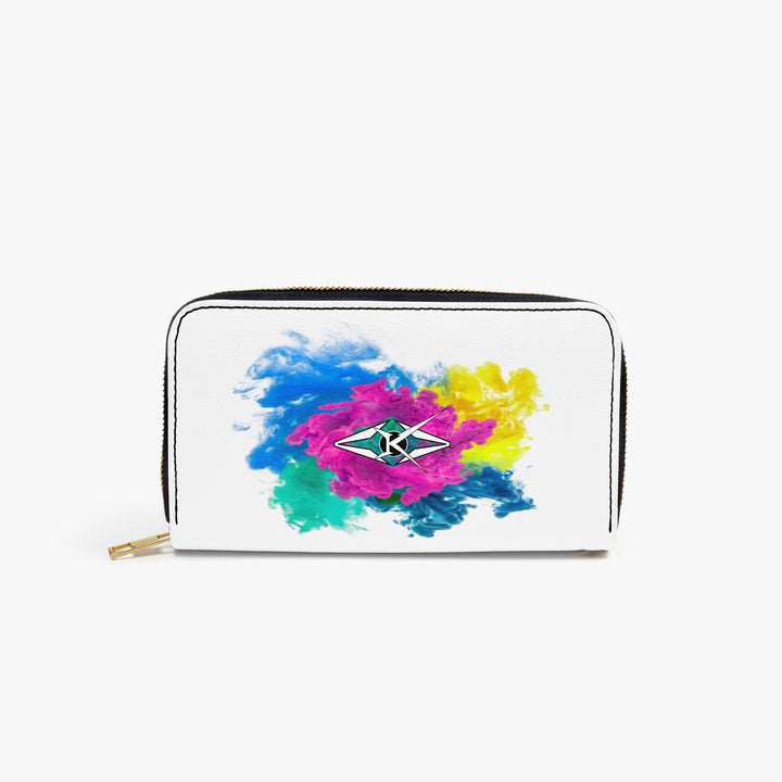 Indulge in the ultimate expression of luxury with the Splat Luxe Wallet from Vybrational Kreators, a renowned fashion brand that epitomizes sophistication and creative craftsmanship. Designed for those who seek refinement and functionality in equal measure, this wallet is the perfect accessory to elevate your daily essentials. Crafted from premium textured PU leather, the wallet offers a soft, smooth touch that exudes a sense of indulgence, while its distinctive splat print design adds a bold yet elegant artistic flair.