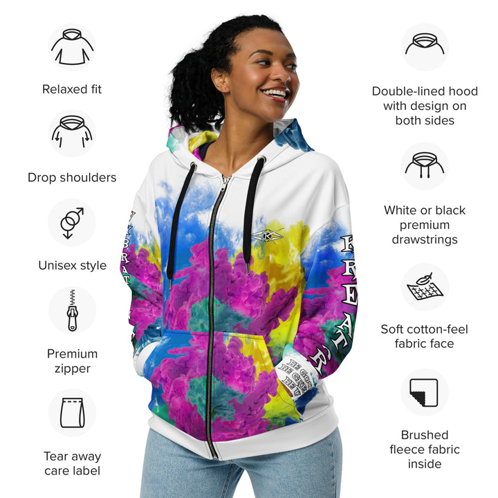 Unleash your creative energy with the Splat LUXE Zip from Vybrational Kreators. Crafted for visionaries, this hoodie merges bold design with comfort, making it the ultimate statement piece for those who embody originality. The dynamic splatter print symbolizes the explosion of ideas, while the premium fabric ensures you stay cozy and inspired all day long. With a sleek zip-up style and a tailored fit, this piece elevates your vibe and keeps you aligned with your creative flow. Whether you're brainstorming your next big idea or bringing your art to life, the Splat Zip is more than just clothing—it's a manifestation of your creative power.