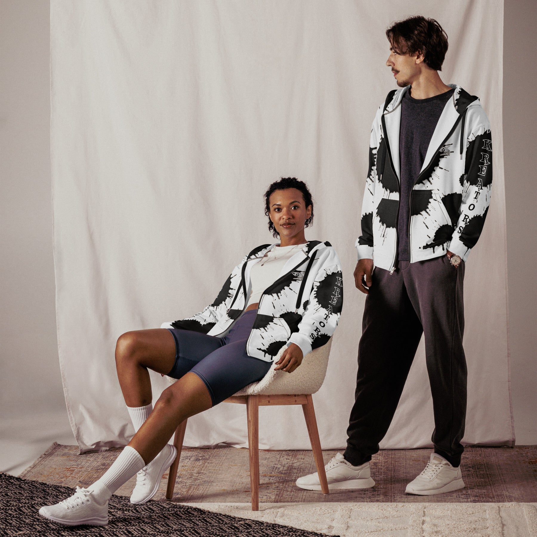 The VibeFlux Zip features a soft cotton-feel fabric on the outside and a brushed fleece interior, delivering luxurious softness and warmth. The unisex relaxed fit, with drop shoulders, provides an effortlessly chic, modern look that flatters all body types. A double-lined hood ensures superior warmth and comfort, making this jacket ideal for layering during cooler months or as a standalone statement piece.