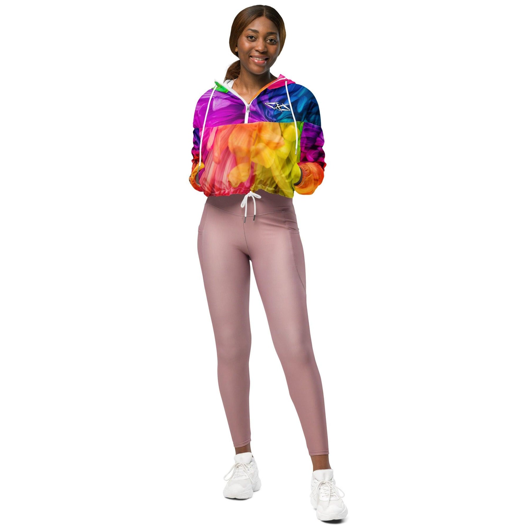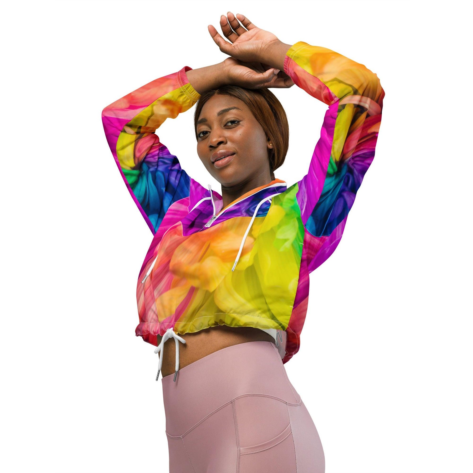 Hike in style without the rain getting in the way—this cropped windbreaker is lightweight, waterproof, and suitable for every kind of adventure. Features include side-slit pockets, breathable mesh lining, and adjustable drawcords on the hood and waist to support all your stylish outdoor looks.