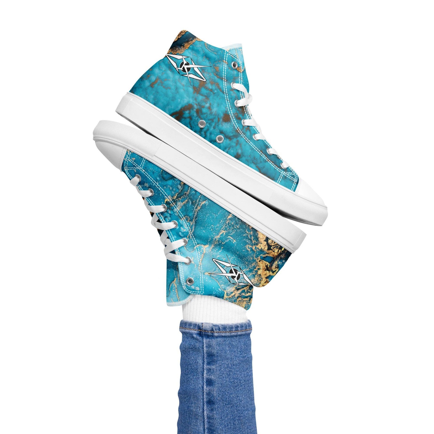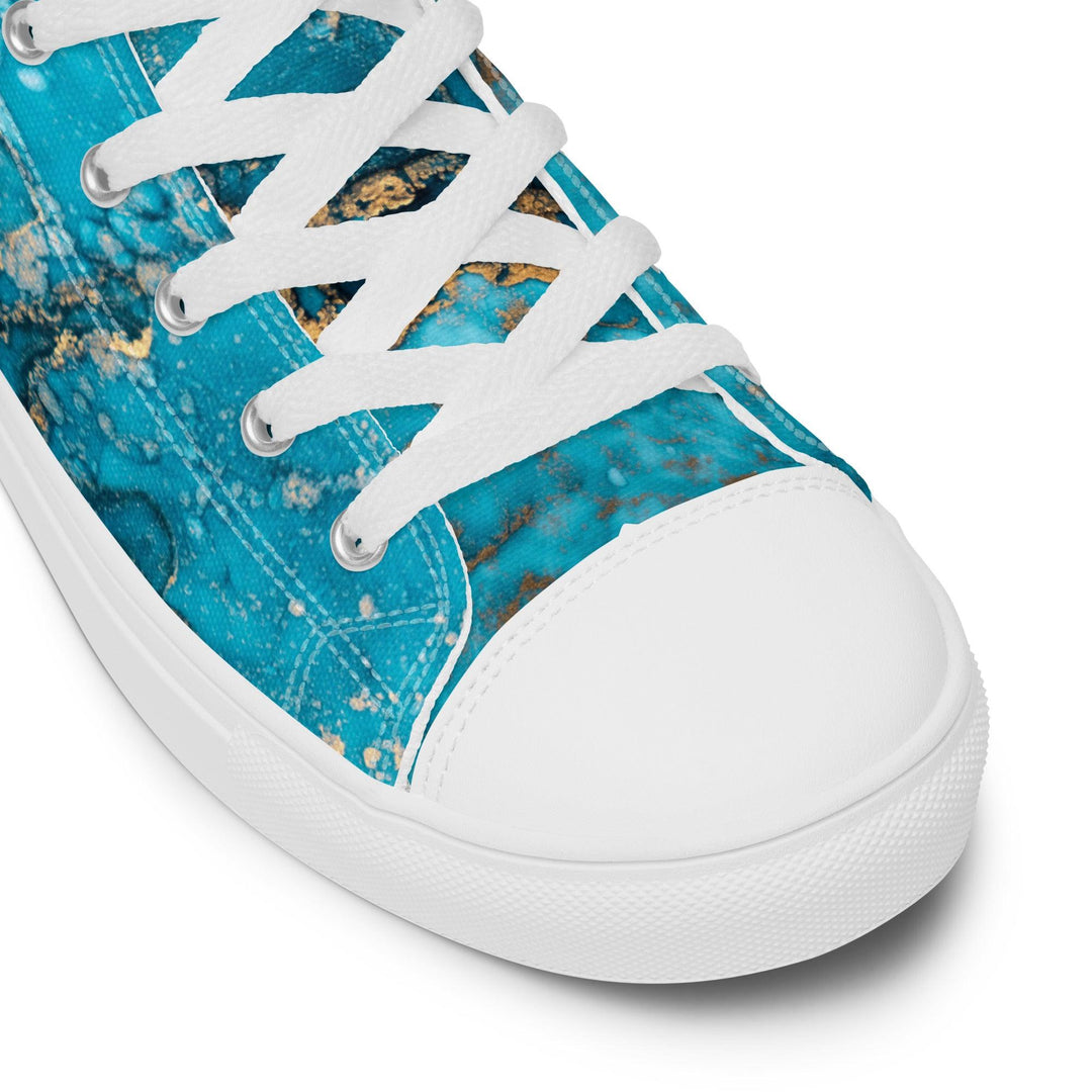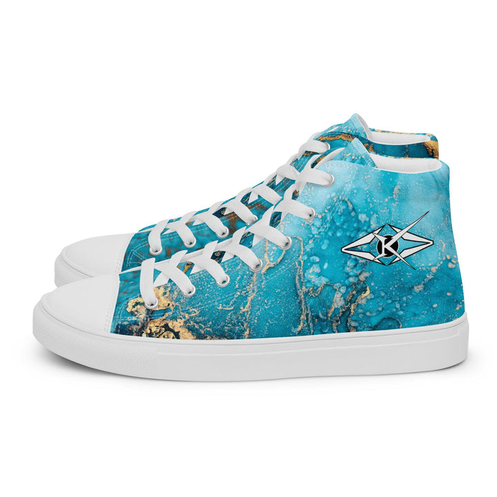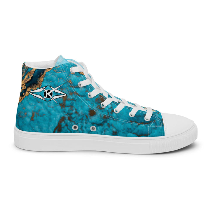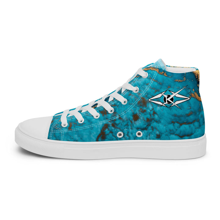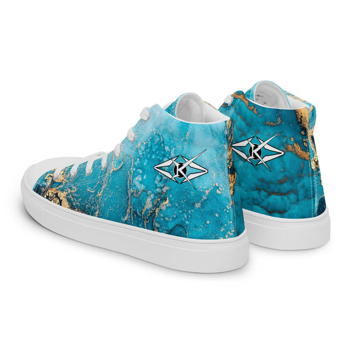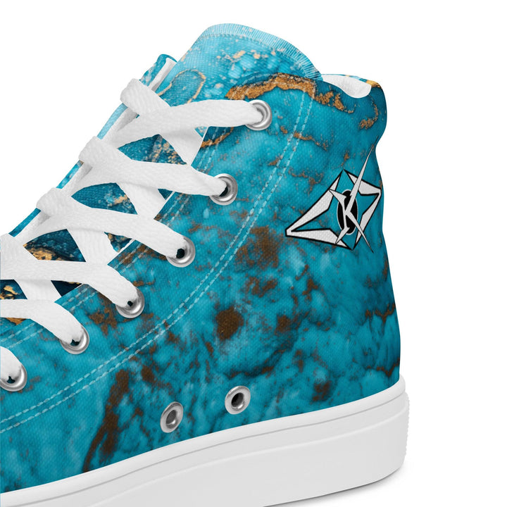 Crafted from premium turquoise canvas, the Luxe Turquoise VYB 22s exude elegance with every detail. The faux leather toe cap and sleek accents provide an added layer of luxury, enhancing the shoe's dynamic design while ensuring durability and resilience. These sneakers make a bold statement with their vibrant color while remaining grounded in the sophistication that only Vybrational Kreators can offer.