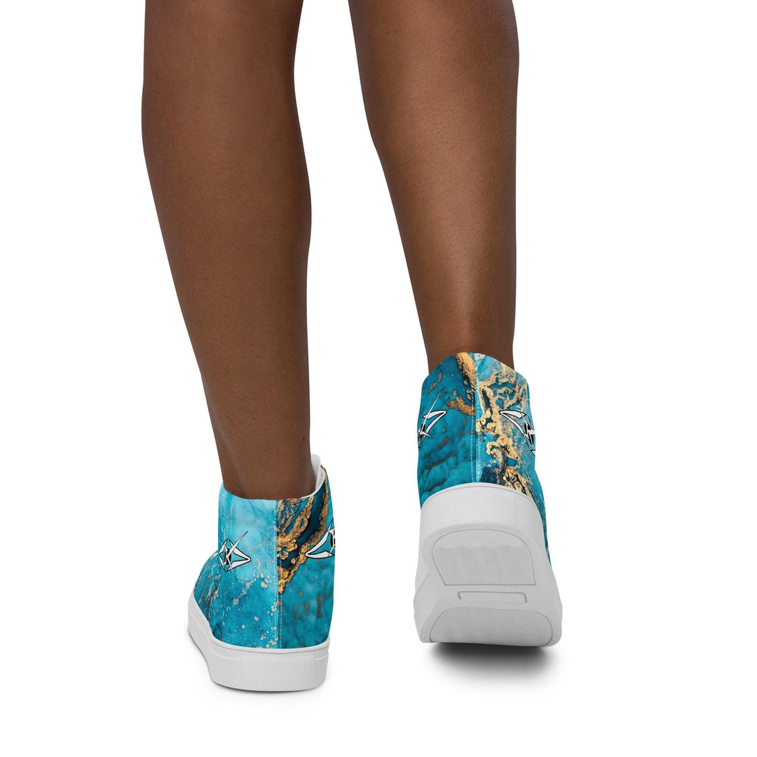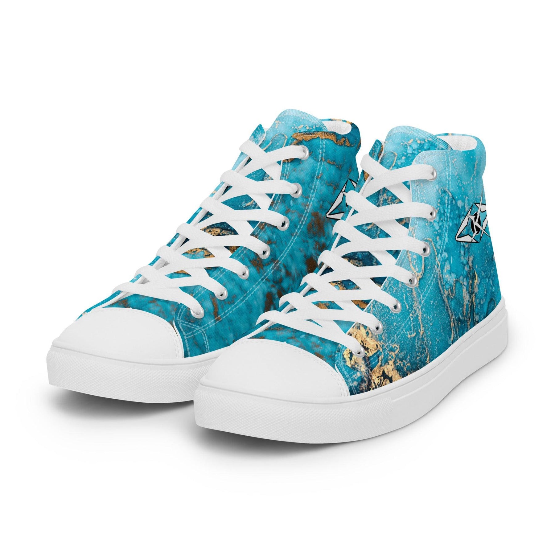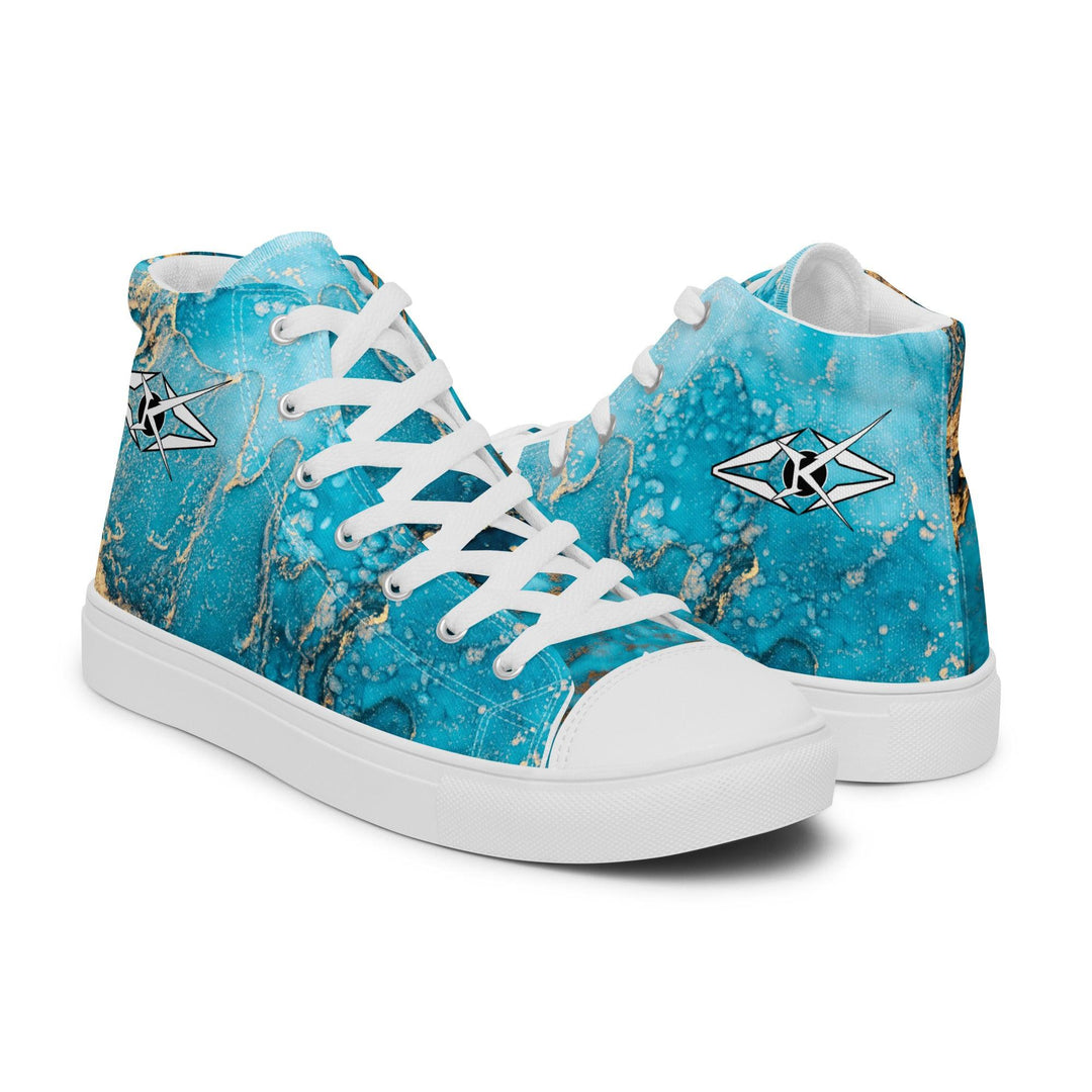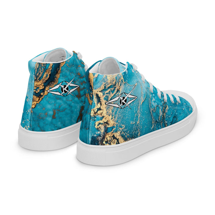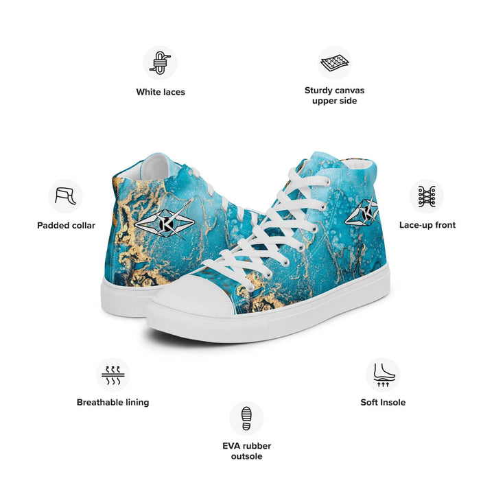 Crafted from premium turquoise canvas, the Luxe Turquoise VYB 22s exude elegance with every detail. The faux leather toe cap and sleek accents provide an added layer of luxury, enhancing the shoe's dynamic design while ensuring durability and resilience. These sneakers make a bold statement with their vibrant color while remaining grounded in the sophistication that only Vybrational Kreators can offer.