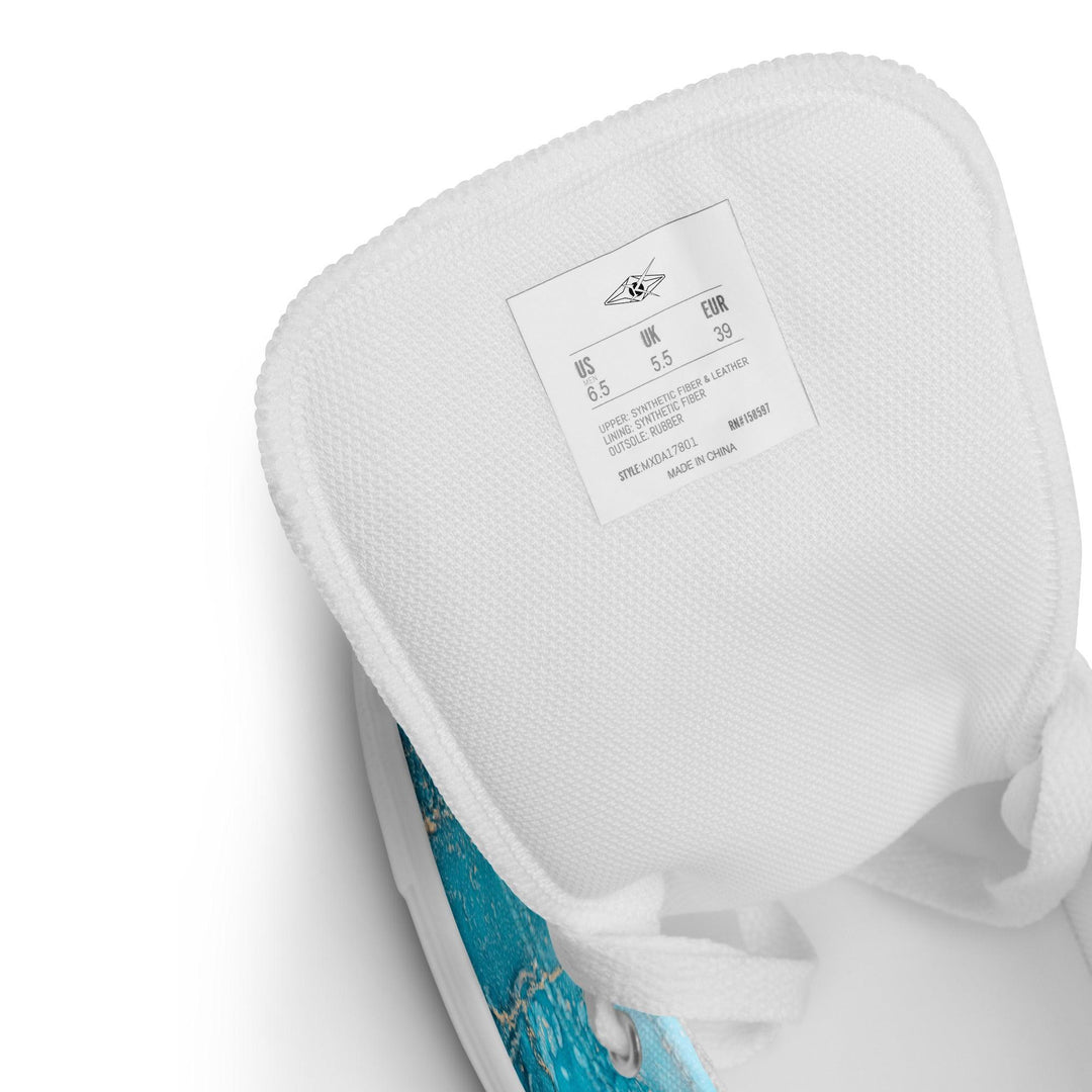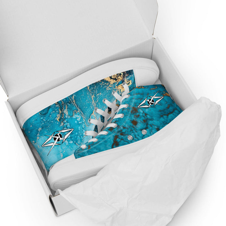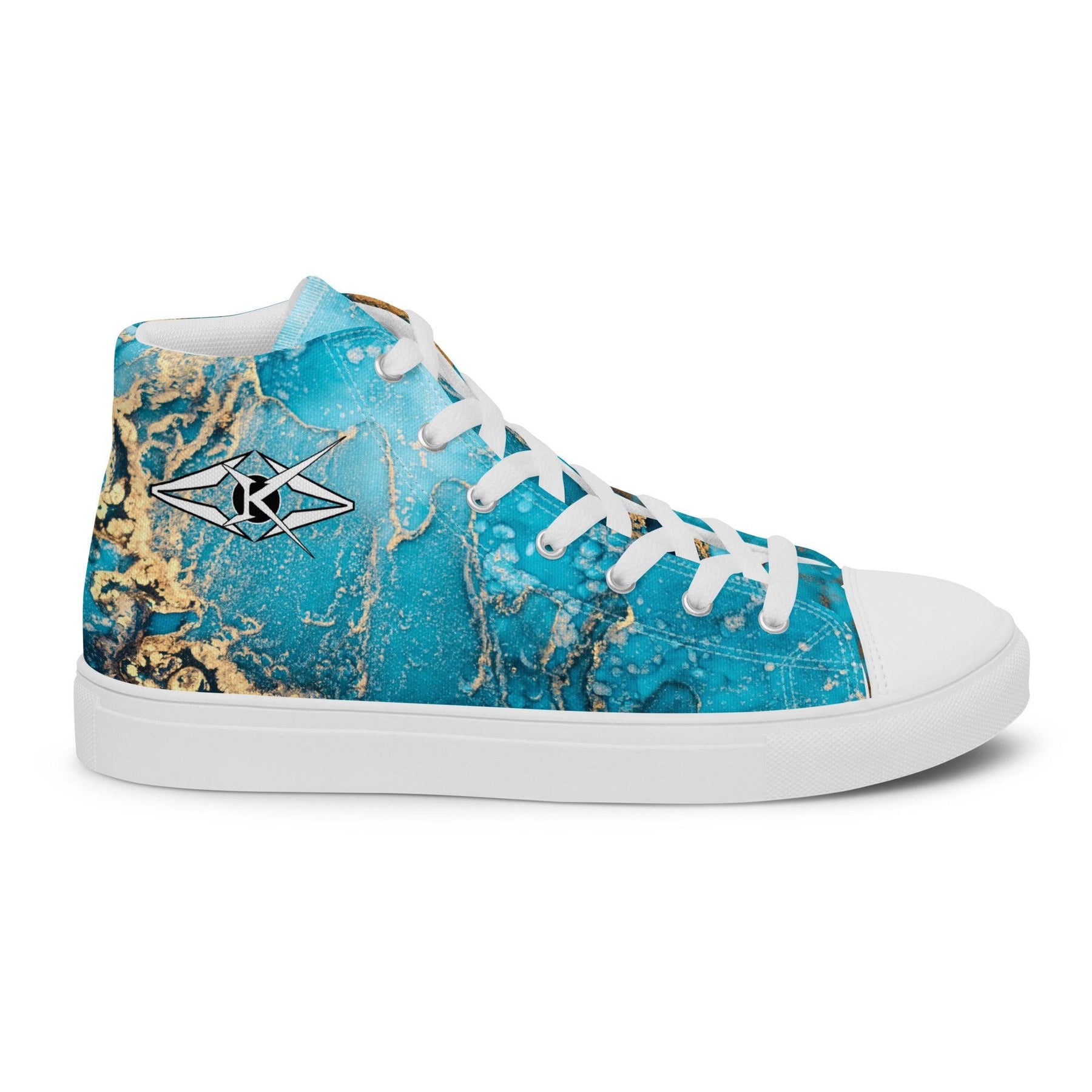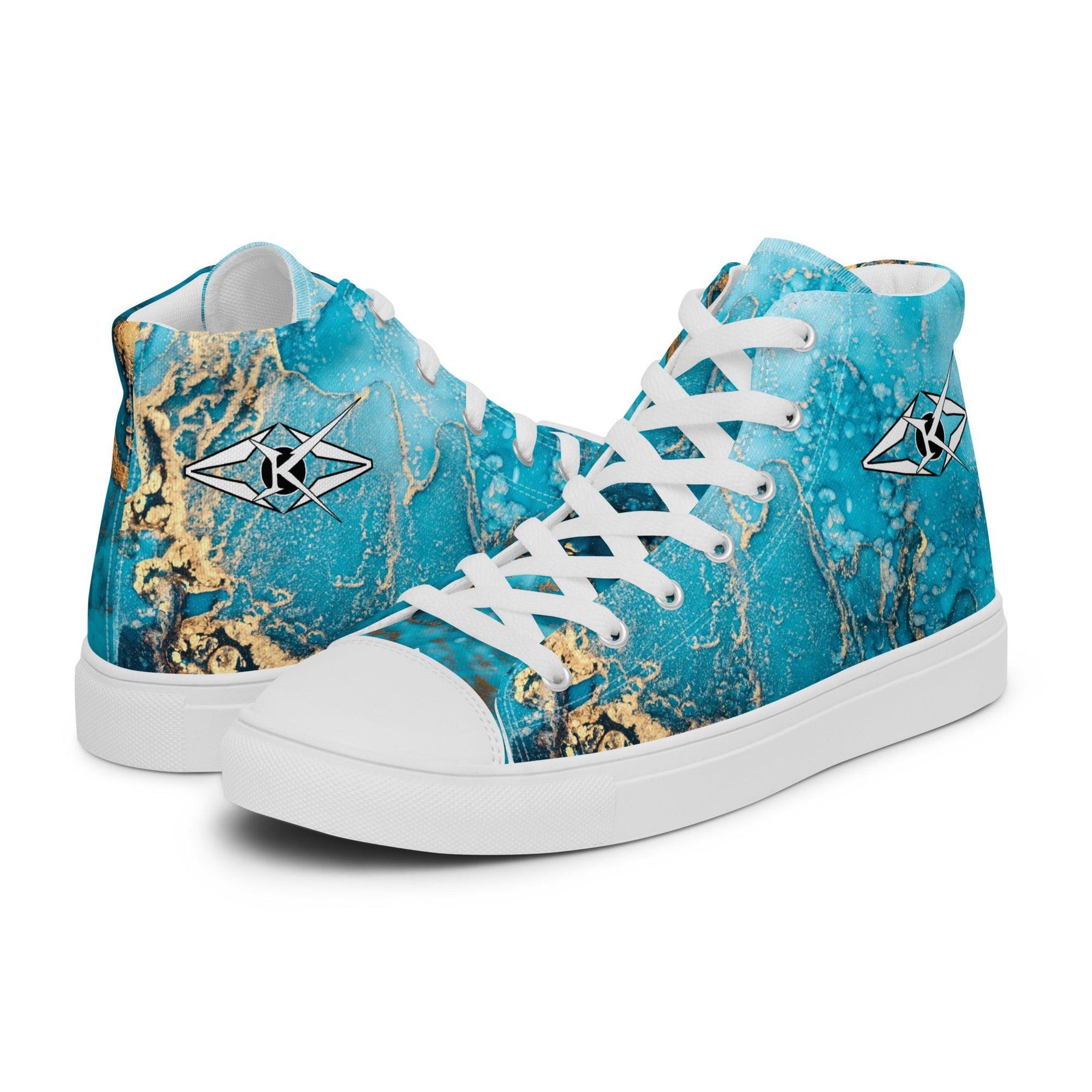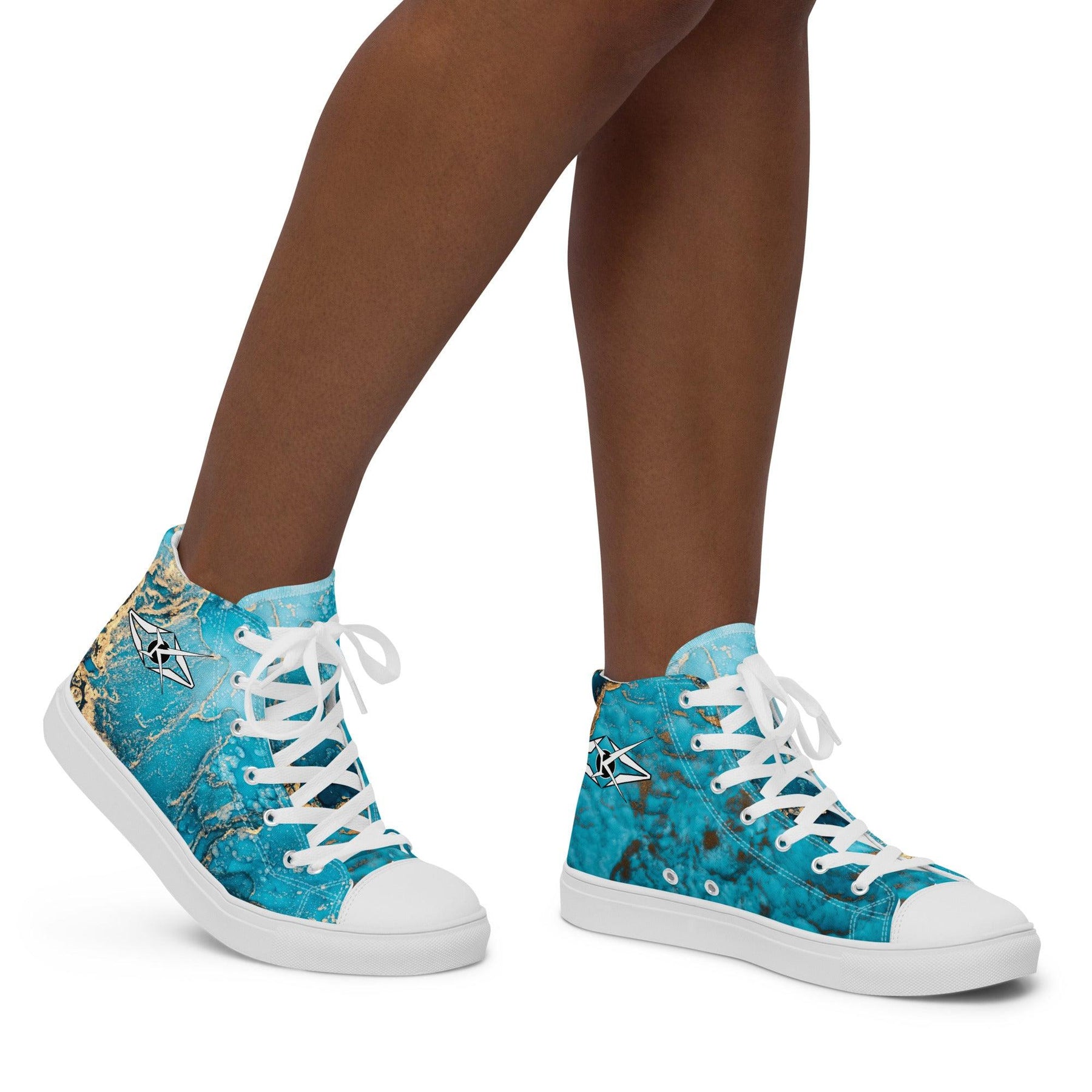 Crafted from premium turquoise canvas, the Luxe Turquoise VYB 22s exude elegance with every detail. The faux leather toe cap and sleek accents provide an added layer of luxury, enhancing the shoe's dynamic design while ensuring durability and resilience. These sneakers make a bold statement with their vibrant color while remaining grounded in the sophistication that only Vybrational Kreators can offer.